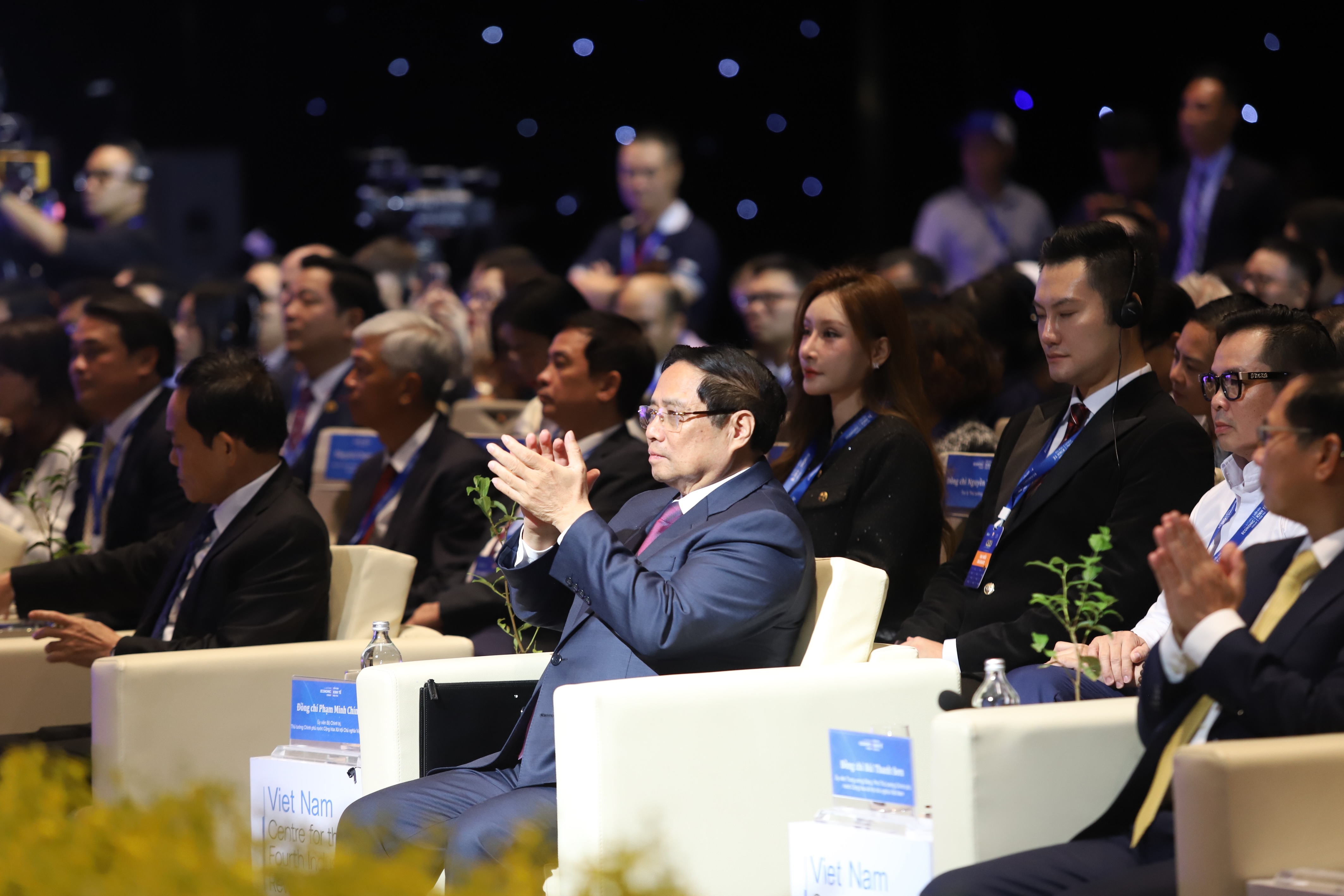Thủ tướng cho biết sau gần 40 năm đổi mới, GDP Việt Nam đã tăng từ 4 tỷ USD lên 510 tỷ USD; thương mại năm 2025 có thể đạt 900 tỷ USD; thu nhập bình quân đầu người vượt 5.000 USD; chỉ số hạnh phúc tăng 39 bậc trong 5 năm. Đối với TP.HCM, Thủ tướng khẳng định thành phố cần nguồn lực mạnh về vốn, thể chế thông thoáng, hạ tầng số hiện đại, nhân lực chất lượng cao và sự hợp tác của bạn bè quốc tế để đạt tầm nhìn đã đề ra.