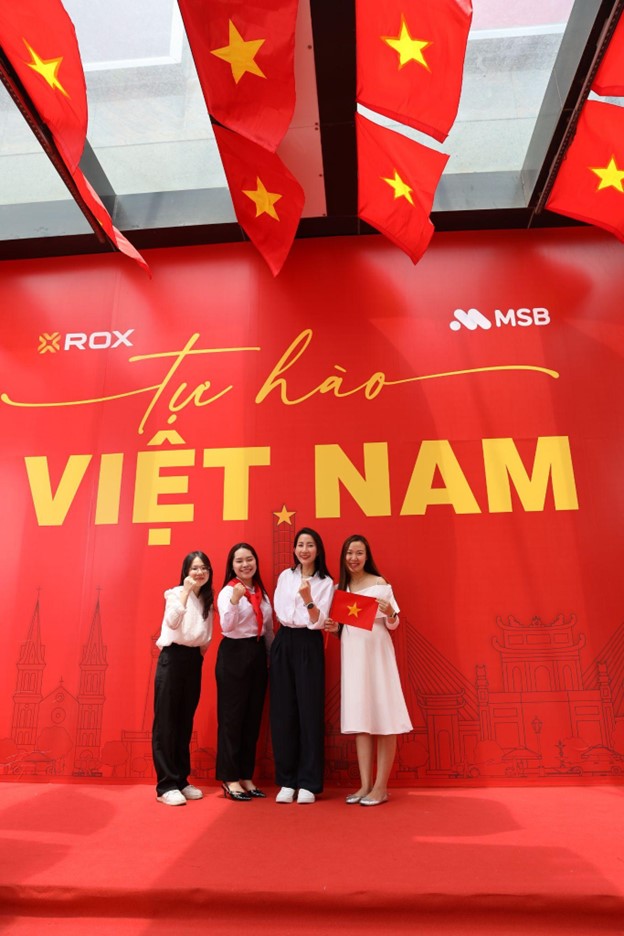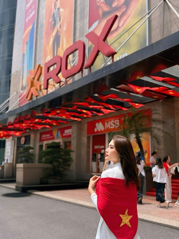 “Bức tường yêu nước” đỏ rực với ngôi sao vàng năm cánh, dòng chữ “Tự hào Việt Nam” và hàng trăm lá cờ tung bay, trở thành phông nền check-in biểu tượng tại ROX Tower.