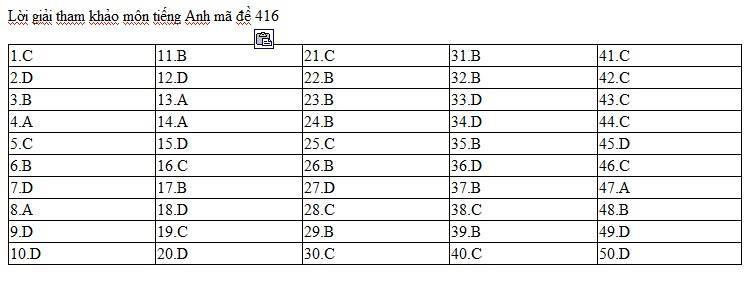 Lời giải tham khảo môn Tiếng Anh mã đề 416