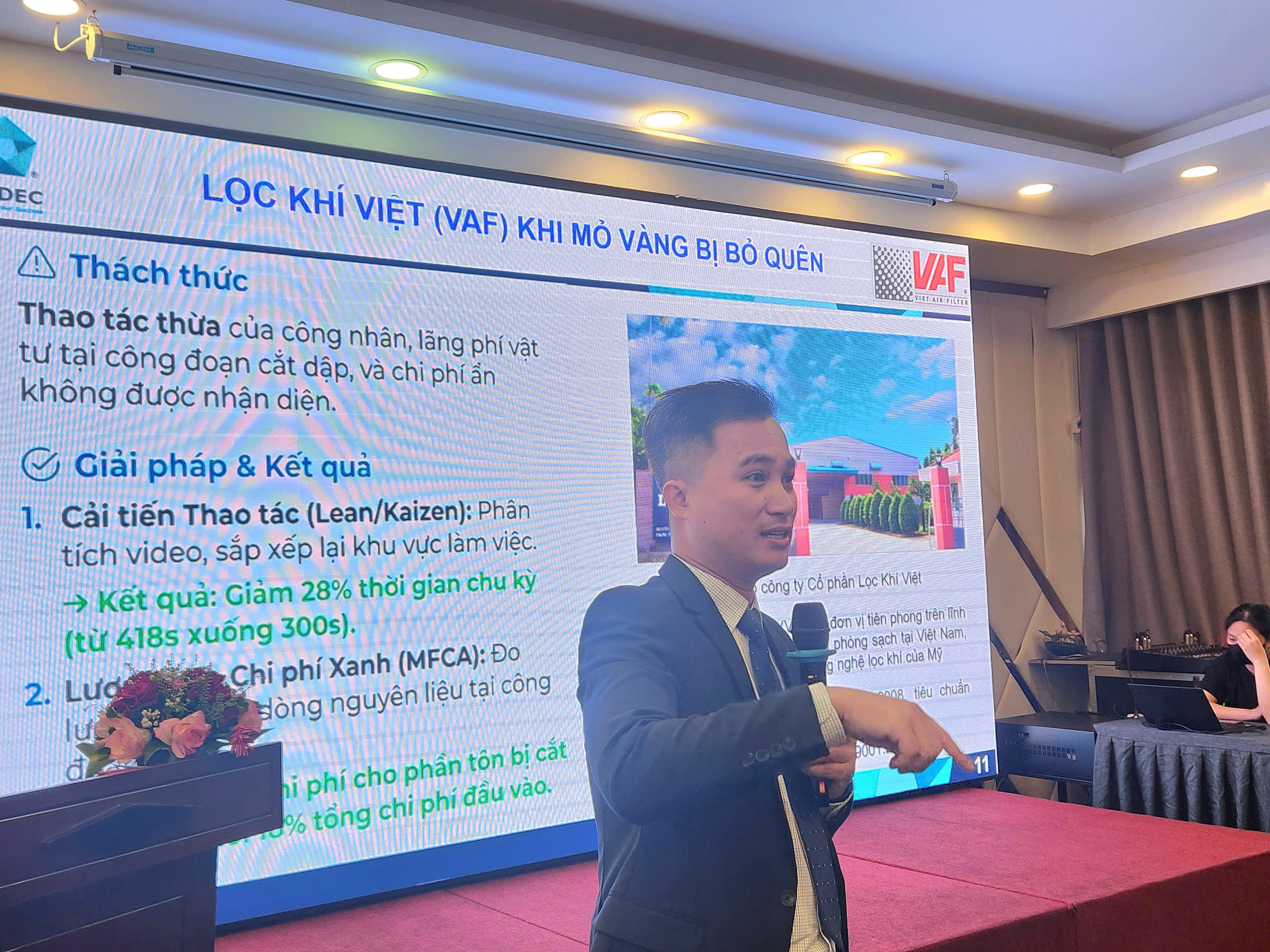 Phát biểu tại Hội thảo, Giám đốc Nhà máy Sevapack Lê Quang Minh đã chia sẻ những chiêm nghiệm sâu sắc về năng suất từ trải nghiệm thực tế trong giai đoạn 2022-2025, khi ông còn đảm nhiệm vai trò Phó Tổng giám đốc tại Công ty TNHH Sản xuất và Thương mại (Tamatra).