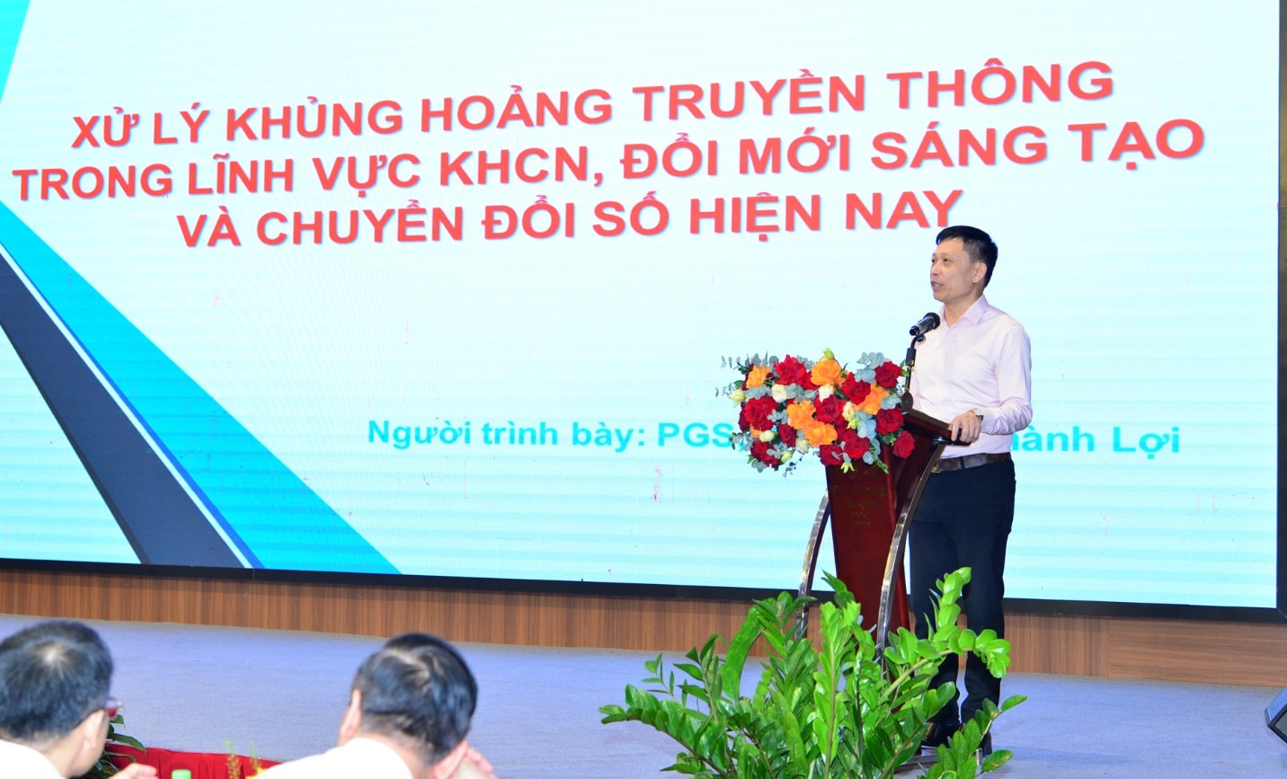 PGS. TS. Nguyễn Thành Lợi, Phó Giám đốc Báo và Phát thanh, Truyền hình Hà Nội trình bày chuyên đề Xử lý khủng hoảng truyền thông trong lĩnh vực KHCN, ĐMST và CĐS.