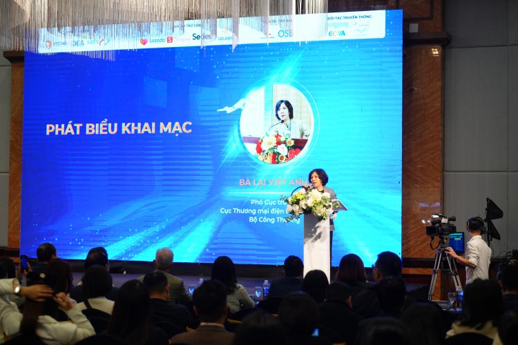 Bà Lại Việt Anh- Phó Cục trưởng Cục Thương mại điện tử và Kinh tế số (Bộ Công Thương) phát biểu tại sự kiện