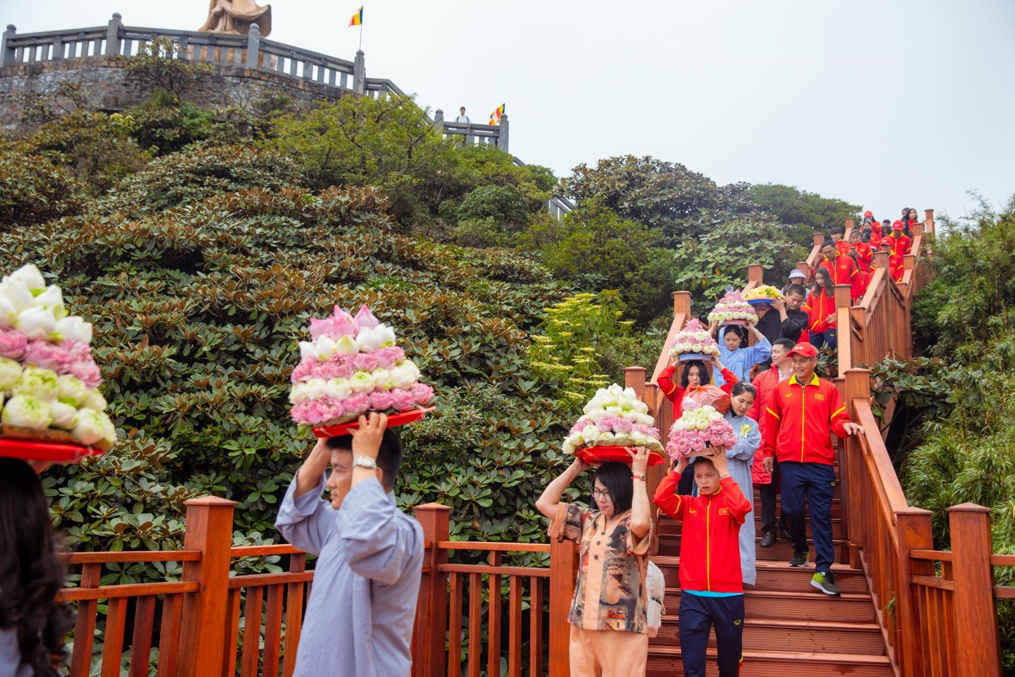 Đội tuyển chiêm bái tại quần thể tâm linh.Sau hành trình chinh phục và chạm tay vào cột mốc đỉnh thiêng Fansipan, chúng ta hoàn toàn có thể tự tin, đội tuyển sẽ ngày càng đạt những thành tích ấn tượng, mang về niềm tự hào cho đất nước, cho hàng triệu người hâm mộ.