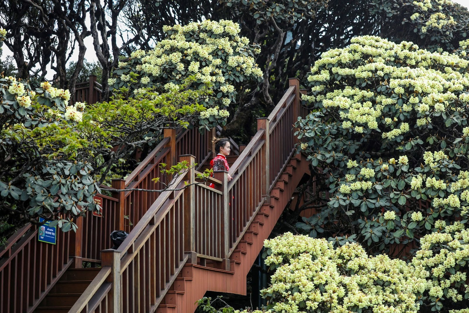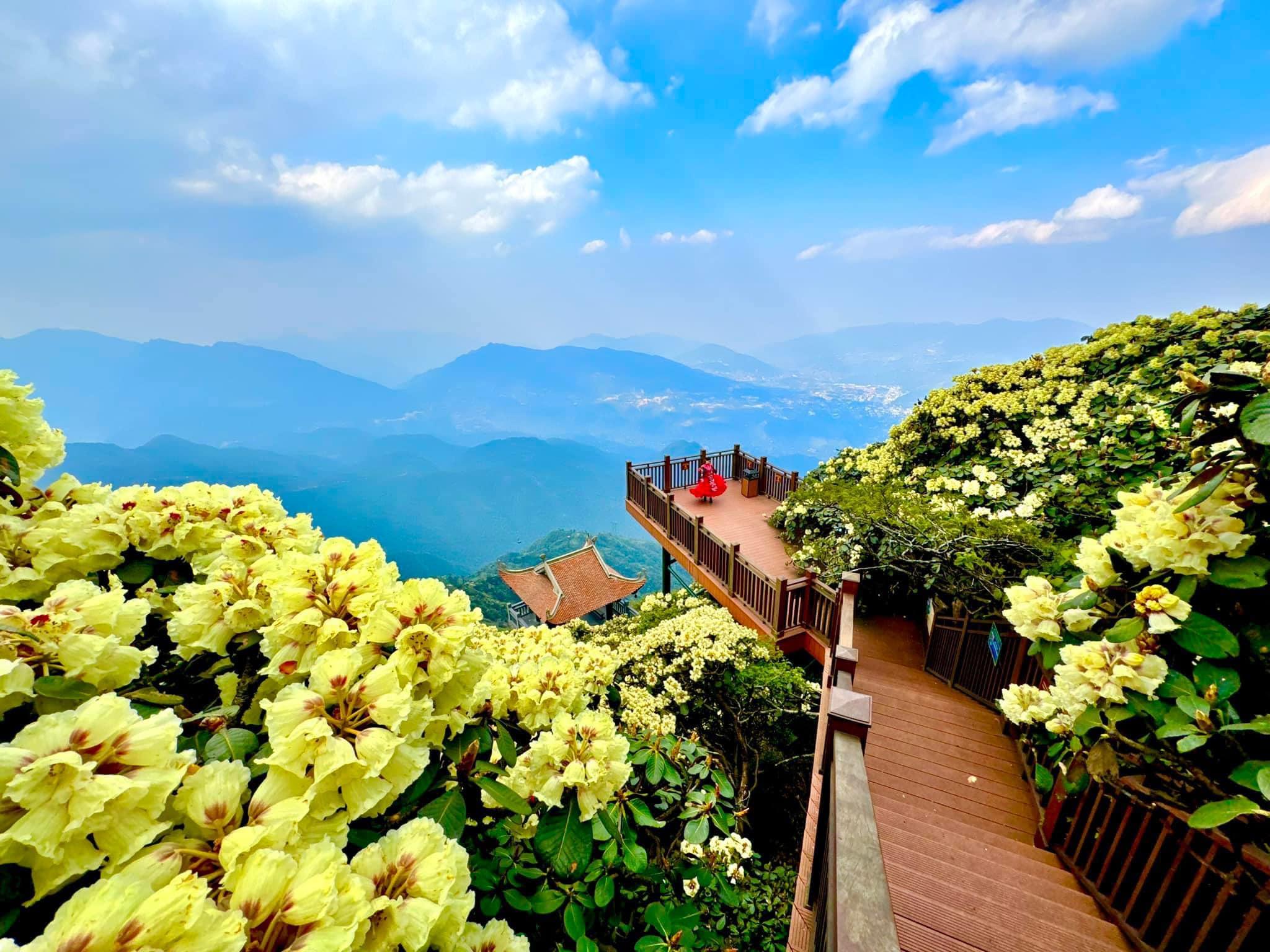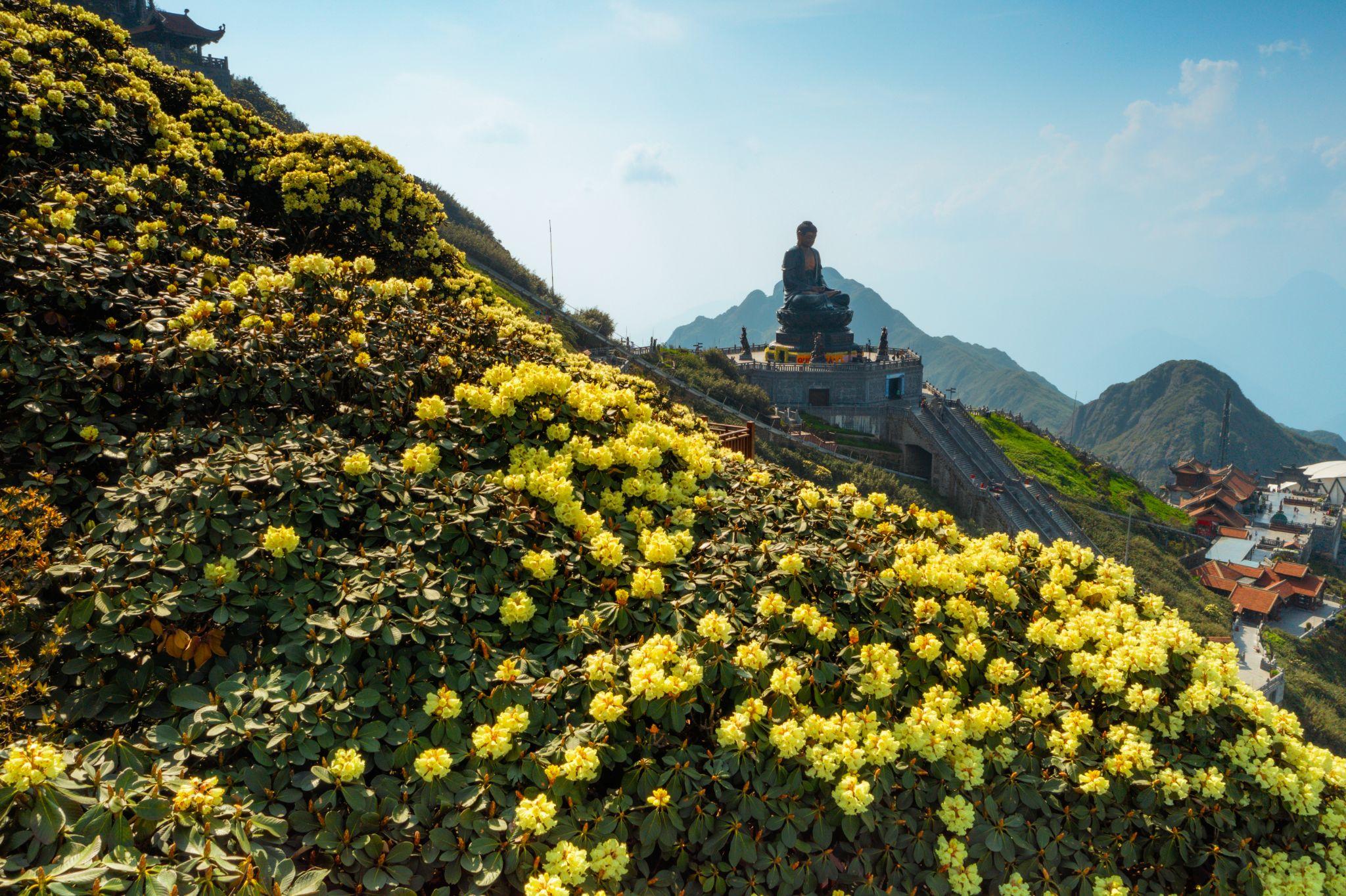 Bên cạnh đó, những cung đường ngập tràn sắc hoa đẹp nhất tại Fansipan luôn chào đón du khách. Dạo bước trên đường La Hán, khu vực quanh tượng Quan Thế Âm Bồ Tát và Kim Sơn Bảo Thắng Tự, nằm ở độ cao 3.000m, bạn sẽ thấy bạt ngàn hoa đỗ quyên đỏ và vàng. Đặc biệt, KDL Sun World Fansipan Legend đã xây dựng hai Đường hoa đỗ quyên tại các khu vực này để du khách có thể chiêm ngưỡng loài hoa này ở cự ly gần nhất và thỏa sức bắt trọn toàn cảnh núi rừng Tây Bắc đẹp mê mẩn.Trải nghiệm những sắc hoa tuyệt đẹp quanh năm tại Fansipan