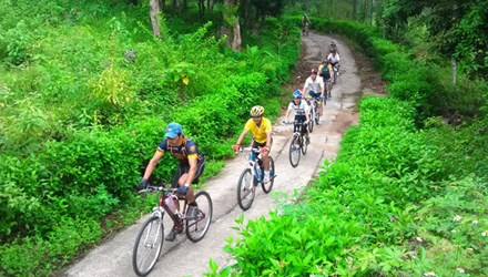 Khách du lịch dạo quanh bán đảo Sơn Trà bằng xe đạp.