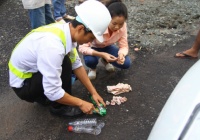 Ổ gà có độ sâu hơn 5 cm, gây nguy hiểm cho các phương tiện tham gia giao thông, đặc biệt là người đi xe máy.