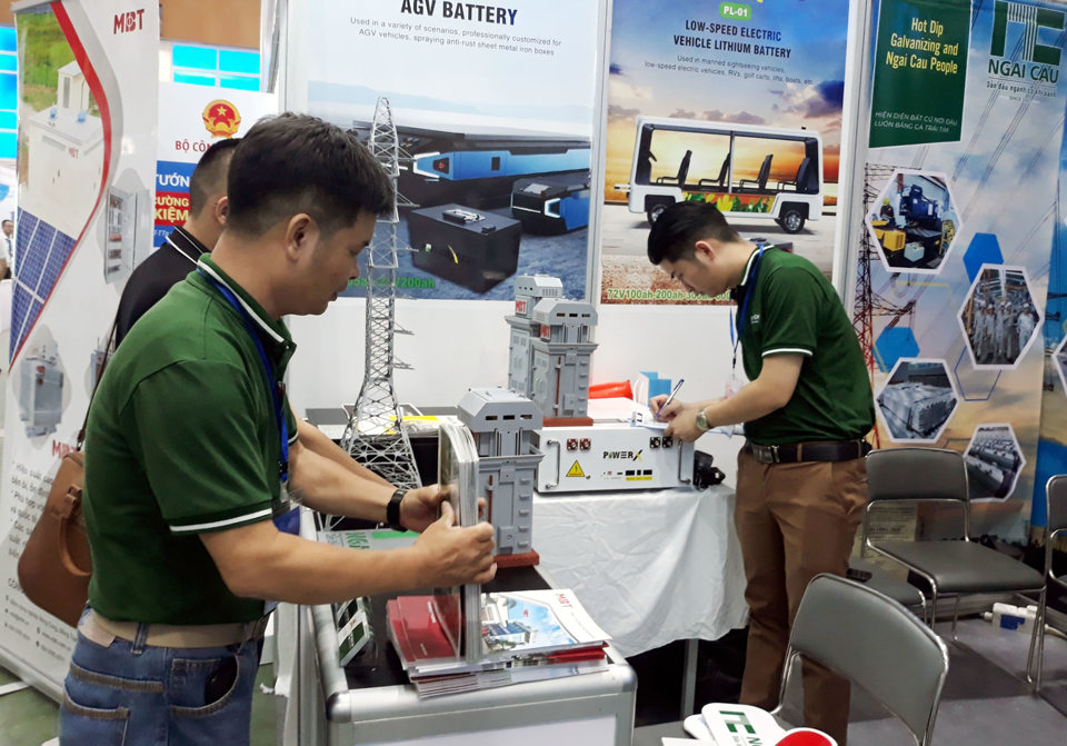 Doanh nghiệp quảng bá công nghệ tiết kiệm năng lượng tại hội chợ. Ảnh: Lê Nam