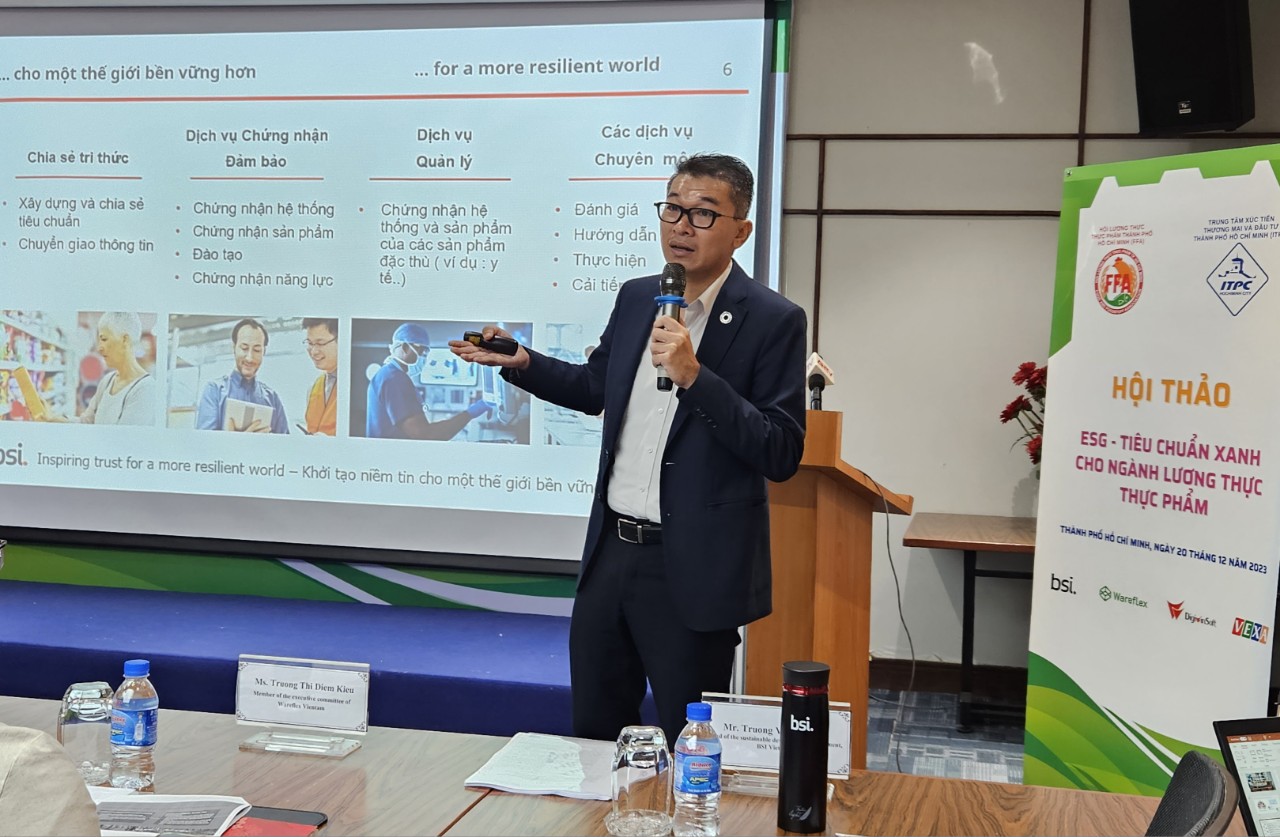 Ngày 20/12, tại TP.HCM đã diễn ra hội nghị "Tiêu chuẩn xanh cho doanh nghiệp ngành lương thực, thực phẩm". Chương trình do Trung tâm Xúc tiến Thương mại và Đầu tư Thành phố (ITPC) phối hợp với Hội Lương thực Thực phẩm TP.HCM (FFA) tổ chức nhằm hỗ trợ doanh nghiệp ngành lương thực, thực phẩm tiếp cận xu hướng xanh hóa thông qua việc cải thiện chỉ số ESG trong quá trình sản xuất, hướng đến năng lượng xanh, sản xuất xanh, tăng trưởng xanh nhằm tăng chỉ số ESG giúp doanh nghiệp phát triển, tăng sức cạnh tranh trong lĩnh vực xuất khẩu.