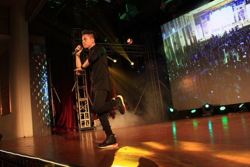 Sự trở lại của Hoàng Tôn trên sân khấu đã khiến sinh viên Học viện Báo chí và tuyên truyền gào thét lạc giọng tên ca sĩ và đầy hào hứng “quậy” cùng anh ở dưới khán đài.