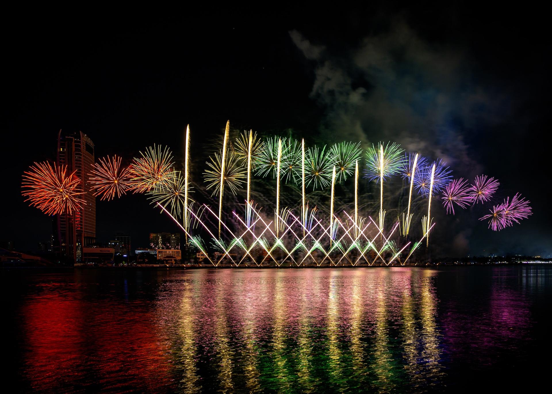 Lễ hội Pháo hoa Quốc tế Đà Nẵng (DIFF) điểm tô sắc màu rực rỡ cho sông Hàn. (Ảnh: Ánh Dương)