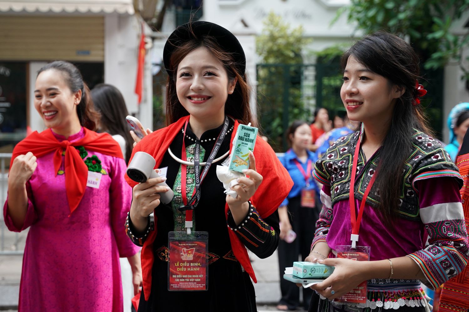 Những sản phẩm dinh dưỡng của Vinamilk góp phần mang đến những nụ cười cho các cô gái trẻ đại diện cho các dân tộc ở Việt Nam tham gia diễu hành. (Ảnh: Vi Nam)
