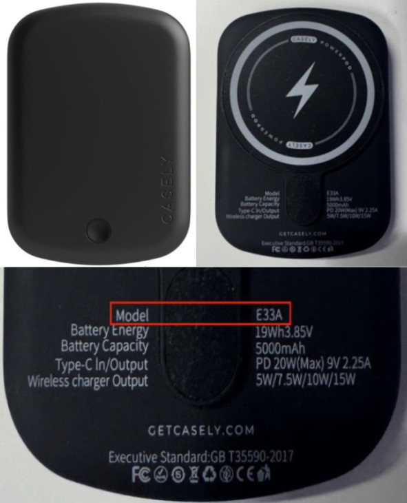 Theo đó, sản phẩm nằm trong diện thu hồi là mẫu sạc dự phòng không dây Casely Power Pods 5000mAh, tương thích chuẩn MagSafe, mã hiệu E33A. Các thiết bị này được sản xuất tại Trung Quốc, phân phối trên các nền tảng thương mại điện tử như Amazon, trang chủ getcasely.com và một số kênh bán lẻ trực tuyến khác, trong thời gian từ tháng 3/2022 đến tháng 9/2024, với giá dao động từ 30 đến 70 USD.