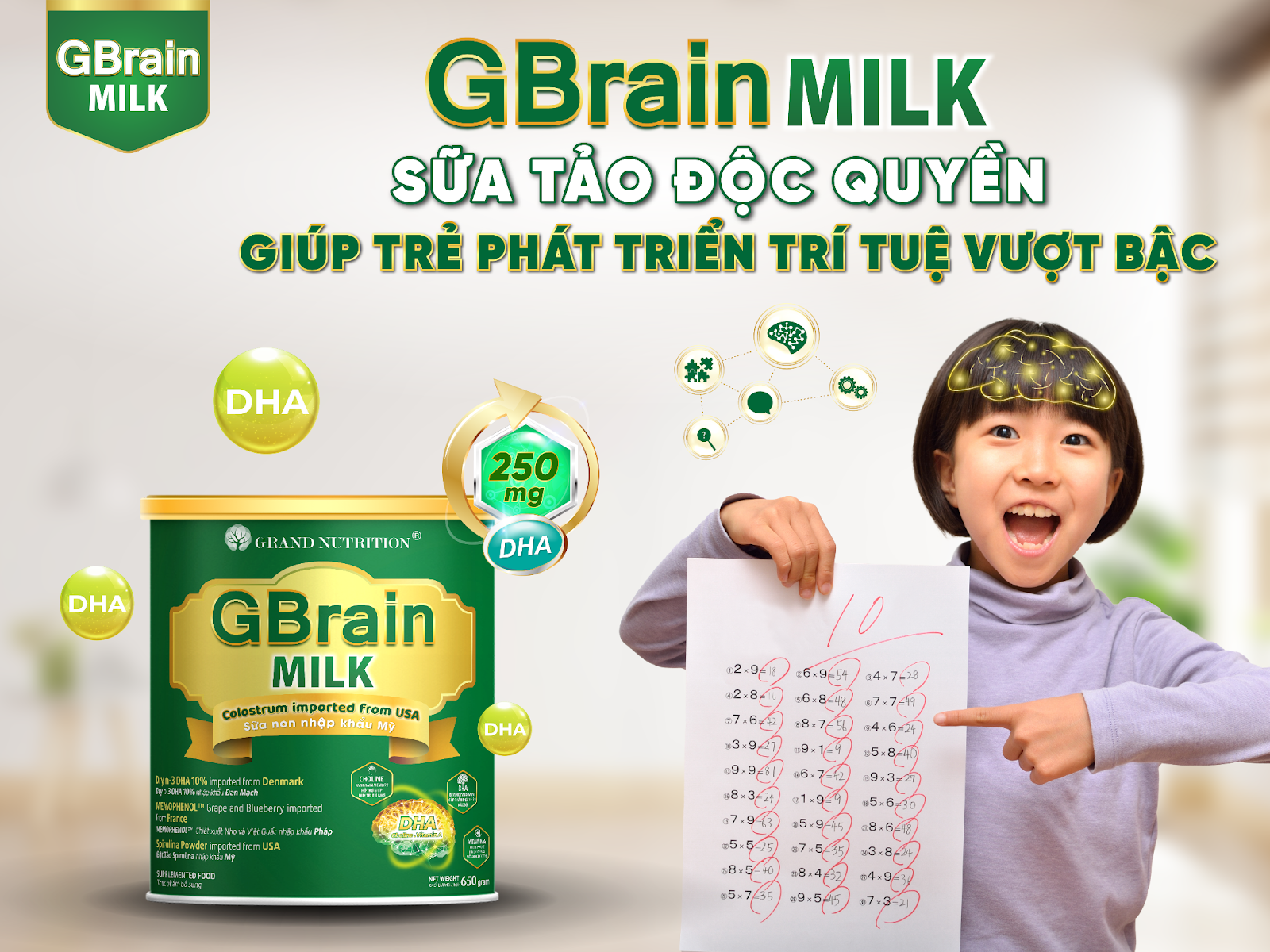 (VietQ.vn) - Trong hành trình nuôi dưỡng và phát triển trẻ em, dinh dưỡng luôn đóng vai trò cốt lõi. Đặc biệt, các bậc phụ huynh ngày càng tìm kiếm những sản phẩm không chỉ đáp ứng nhu cầu dinh dưỡng cơ bản mà còn hỗ trợ sự phát triển toàn diện, đặc biệt là trí não. Hiểu được điều đó, sữa tảo trí não GBrain Milk chính thức ra mắt với một công thức đột phá, kết hợp dinh dưỡng tiên tiến từ tảo biển, mang đến giải pháp tối ưu giúp trẻ thông minh và phát triển vượt trội.
