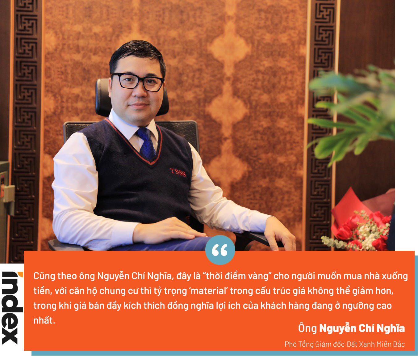 Nhiều nhà đầu tư và khách hàng vẫn đợi thêm giá chung cư giảm tiếp, tuy nhiên với chung cư, đặc biệt là những dự án nội đô thì khó giảm thêm nữa. Bởi, hiện nay chi phí đầu vào của chung cư cũng bị đẩy lên cao, thuế đất cao hơn, phí đền bù giải phóng mặt bằng tăng, giá vật liệu xây dựng tăng, giá nhân công tăng, chi phí thủ tục tăng khi thời gian thực hiện kéo dài, lãi vay tăng… chính vì vậy không có cơ sở nào để giá căn hộ chung cư có thể giảm xuống trong thời gian tới.