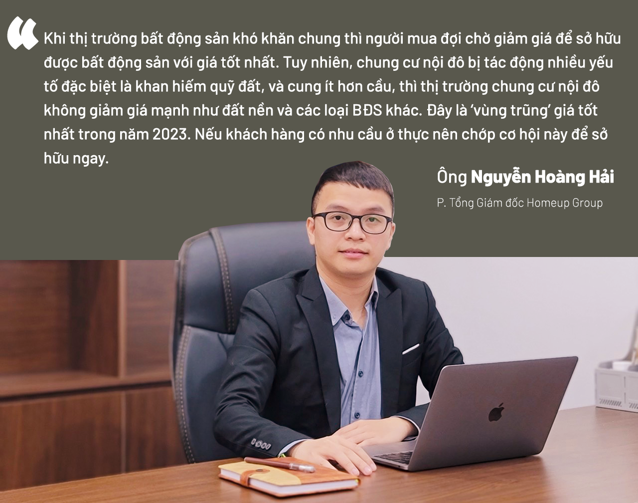 Ông Nguyễn Hoàng Hải - Phó Tổng Giám đốc nền tảng Proptech Homeup cho biết: Từ đầu năm 2023 lượng tin đăng bán chung cư tăng đột biến trên nền tảng, các quận có những dự án mới đang giao dịch sôi nổi như Nam Từ Liêm, Hà Đông, Gia Lâm, Thanh Xuân.
