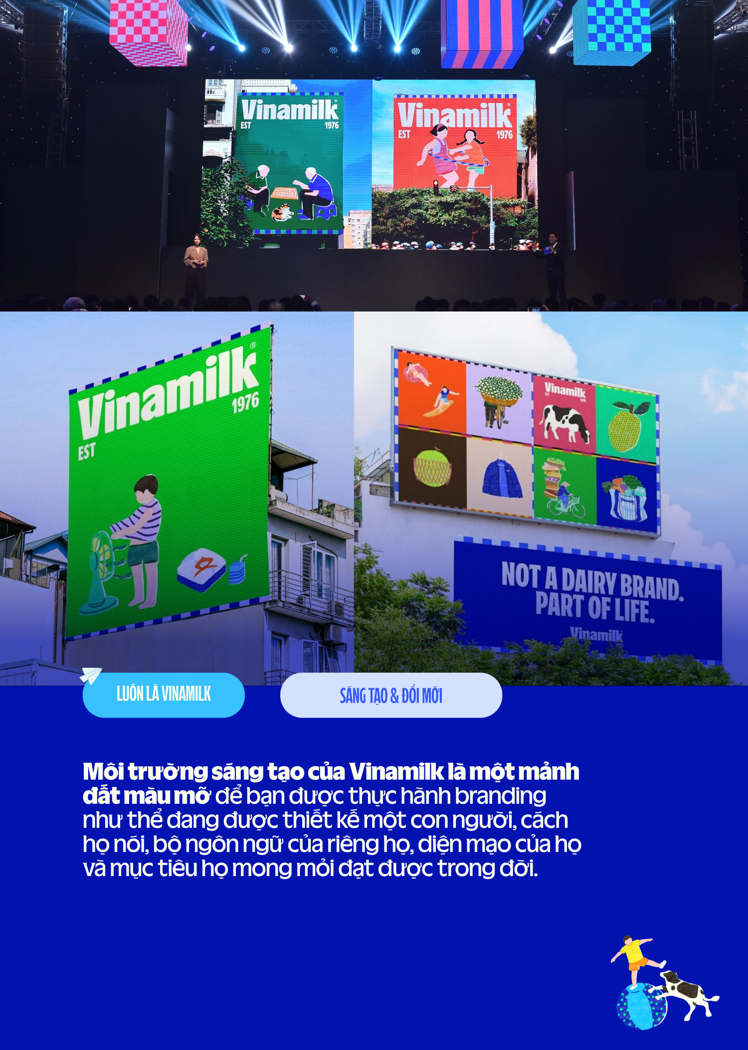 Sự táo bạo và đa dạng trong văn hóa, góc nhìn, cùng sự đào sâu và tỉ mỉ đã mang đến những bao bì mới liên tục gây tiếng vang. Hơn 130 danh mục sản phẩm, những tài năng sáng tạo từ khắp thế giới và bài toán tái định vị thiết kế thương hiệu đều mang cùng một thử thách: Làm sao để mỗi dòng sản phẩm có cá tính riêng, đưa ra những góc nhìn hoàn toàn mới trên kệ hàng nhưng tất cả kết nối về một mái nhà Vinamilk.