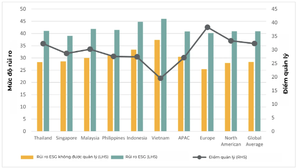 Hình 1: Mức độ rủi ro và điểm quản lý ESG của một số quốc gia