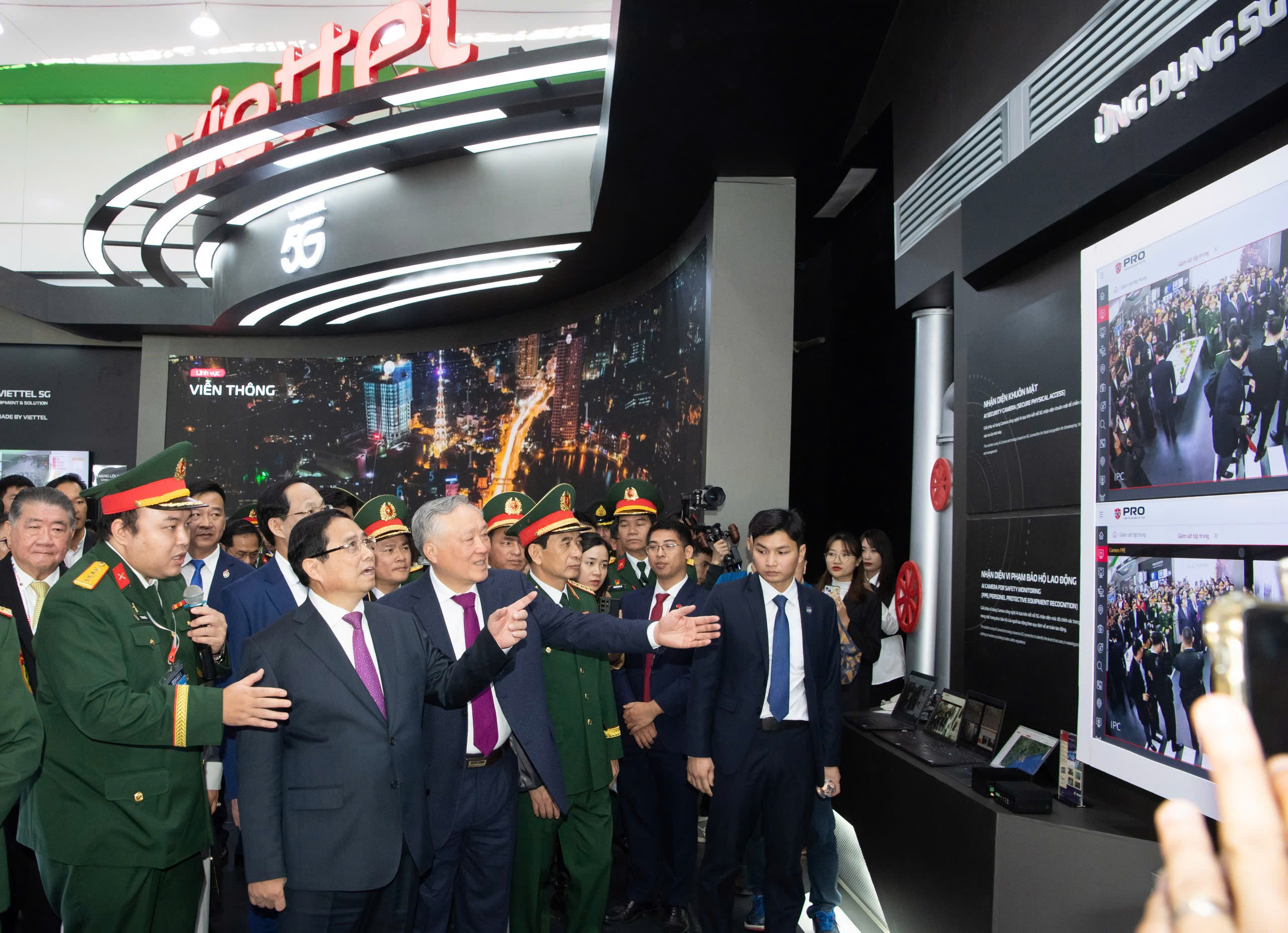 Gian hàng Viettel là nơi đầu tiên Thủ tướng Phạm Minh Chính đến thăm tại Triển lãm Quốc phòng quốc tế 2024