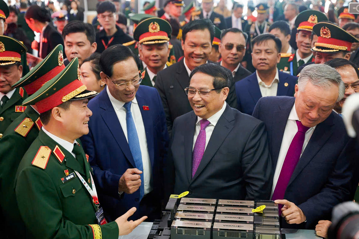 Đến gian trưng bày của Viettel tại khu kinh tế quốc phòng, Thủ tướng Phạm Minh Chính bày tỏ sự quan tâm về siêu máy tính AI. Sản phẩm được thiết kế đặc biệt cho ứng dụng trí tuệ nhân tạo (AI) và tính toán hiệu năng cao; trang bị công nghệ top đầu thế giới, mang lại hiệu năng xử lý dữ liệu khổng lồ và tốc độ tính toán lên đến 4 triệu tỷ phép toán trên giây. Tại đây, đại diện Viettel cũng giới thiệu 6 nhóm giải pháp: Hệ sinh thái 5G, Hạ tầng Logistics Viettel, Nhà máy thông minh, Năng lượng xanh, Thành phố thông minh và các giải pháp thông minh cho người dân.