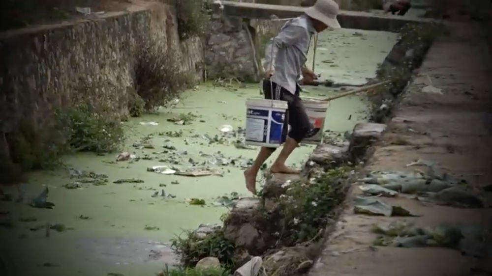 Khi phóng viên tiếp cận nói chuyện thì người đàn ông này thừa nhận mình đang gánh nước bẩn tưới cho rau nhưng vẫn tìm cách nói giảm nói tránh sự nghiêm trọng của nguồn nước bẩn ở đây.