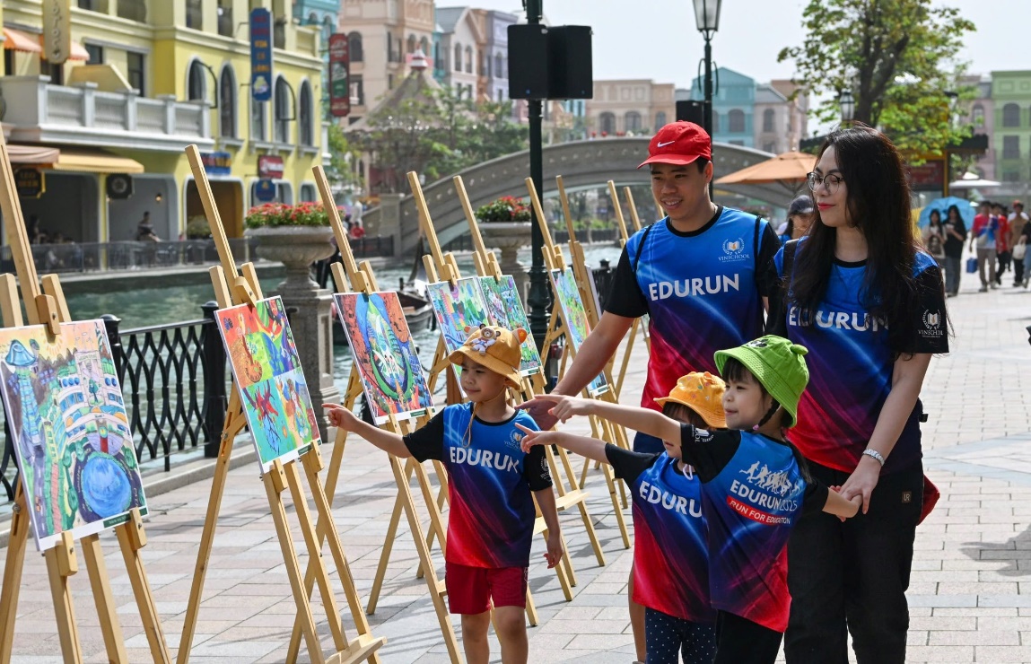 Các tác phẩm tranh vẽ từ cuộc thi “Gửi Tương Lai Xanh 2050” mùa 1 được giới thiệu trưng bày tại sự kiện “Ngày Hội Xanh 2025” do Vingroup tổ chức vào tháng 3/2025. Ảnh: QVTLX.Đáng chú ý, dù là hạng mục đòi hỏi nhiều thời gian và kỹ năng hơn, hạng mục Video vẫn thu hút gần 900 bài dự thi, góp phần làm nên sự phong phú, đa dạng về hình thức thể hiện và cách truyền tải thông điệp trong mùa giải năm nay.