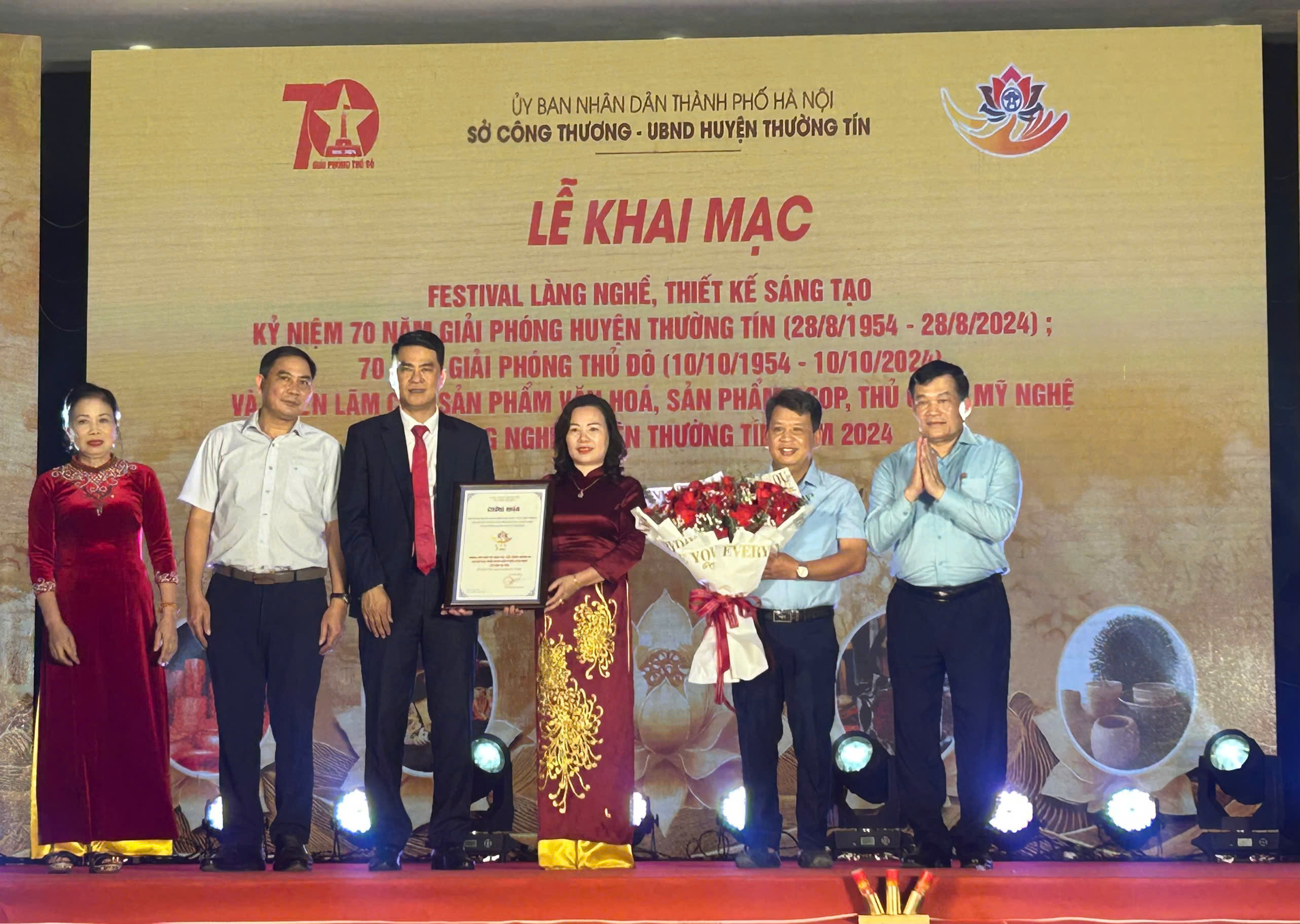Trao chứng nhận Trung tâm thiết kế sáng tạo, giới thiệu, quảng bá và bán sản phẩm OCOP, sản phẩm làng nghề gắn với du lịch xã Duyên Thái (huyện Thường Tín)