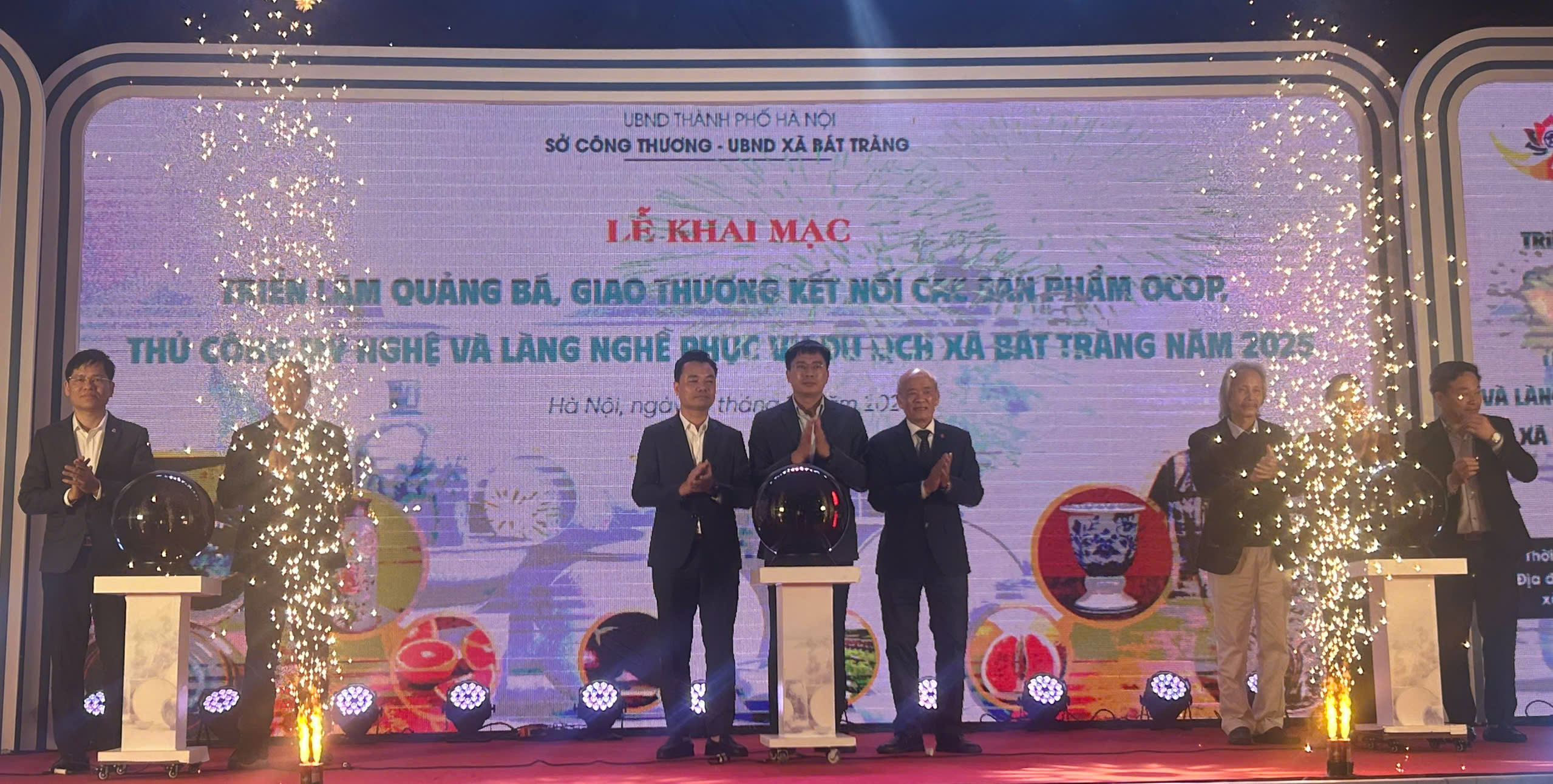 Nghi thức khai mạc Triển lãm quảng bá, giao thương kết nối các sản phẩm OCOP, thủ công mỹ nghệ và làng nghề phục vụ du lịch tại xã Bát Tràng năm 2025”