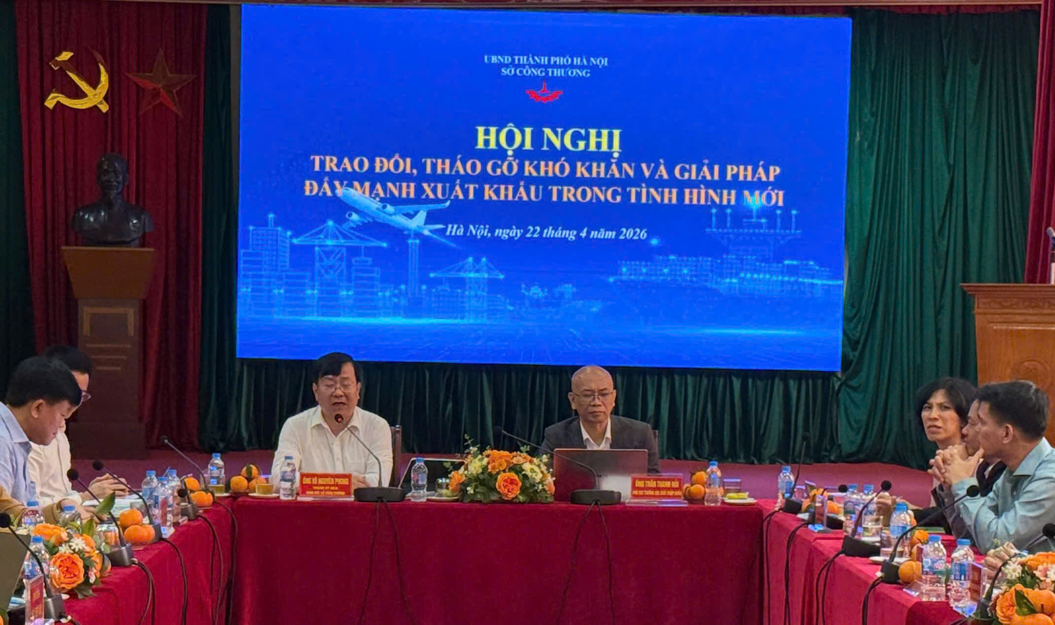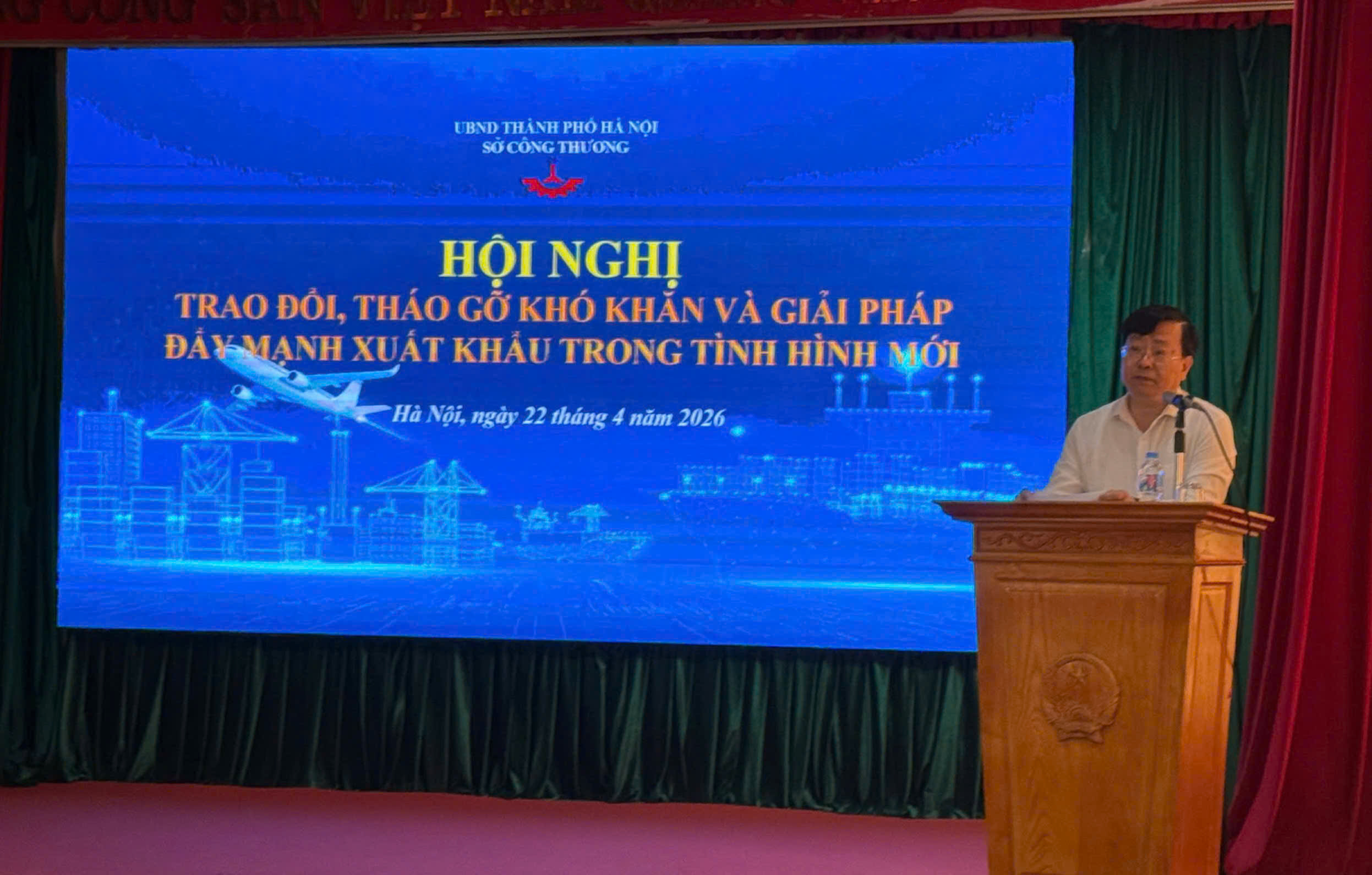 Ngày 22/4/2026, Sở Công Thương Hà Nội phối hợp với Cục Xuất nhập khẩu (Bộ Công Thương) tổ chức Hội nghị trao đổi, tháo gỡ khó khăn và giải pháp đẩy mạnh xuất khẩu trong tình hình mới”.