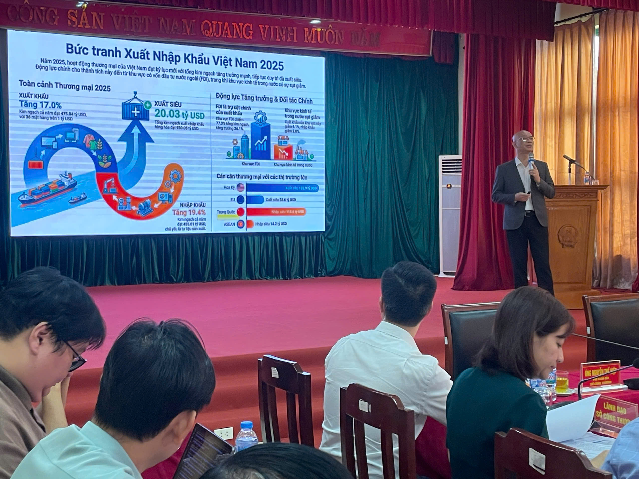 Theo ông Nguyễn Thế Hiệp, áp lực hoàn thành mục tiêu tăng trưởng xuất khẩu 12% trong cả năm là rất lớn, đòi hỏi sự vào cuộc quyết liệt hơn, đồng bộ hơn và thực chất hơn của các cấp, các ngành, các hiệp hội và cộng đồng doanh nghiệp.