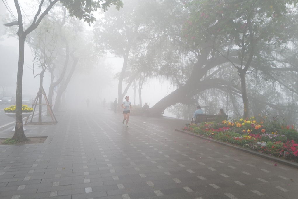 Hà Nội: Sương mù bao phủ cùng ô nhiễm không khí ở mức nguy hại