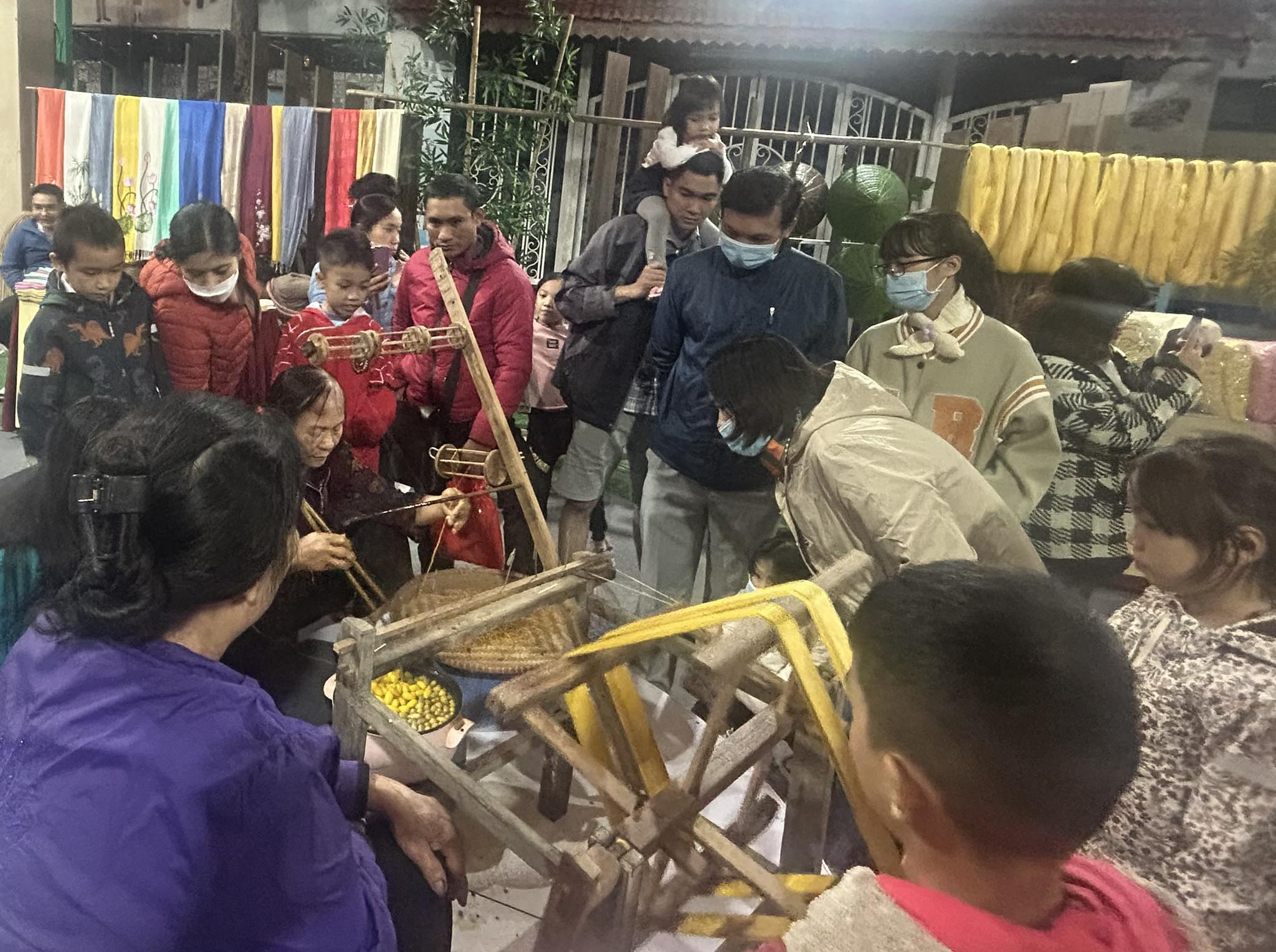 Khu trình diễn dệt may của các nghệ nhân làng nghề thu hút khách tham quan