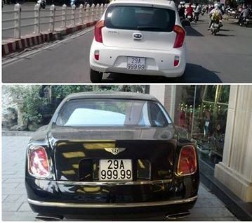 Siêu xe Bentley hạng sang và KIA Morning hạng bình dân cùng mang biển siêu đẹp 29A-99.999