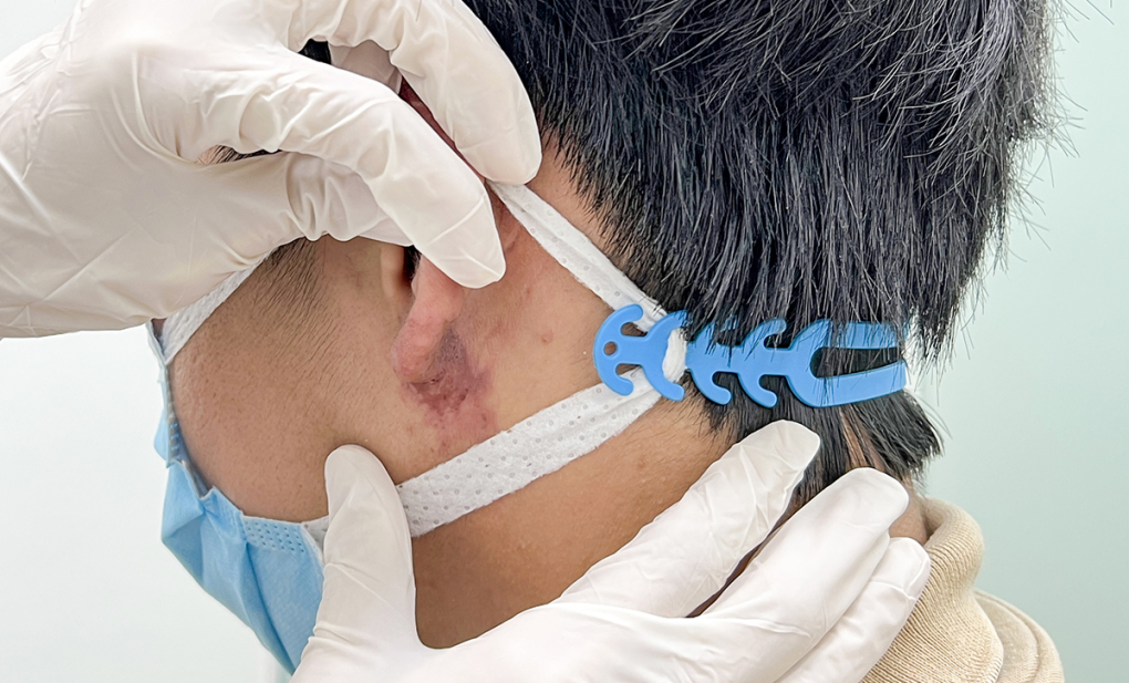 Nam thanh niên 24 tuổi bị hoại tử tai sau tiêm filler tạo "tai Phật". (Ảnh: Lan Anh)
