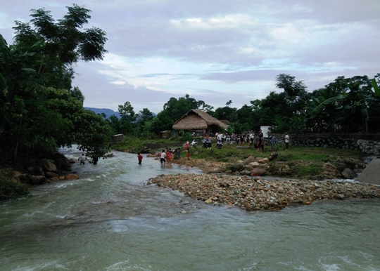 Đường từ trung tâm xã Thanh Quân vào bản Chiềng Cà 2 phải đi qua một con suối nước lớn, rất "hung dữ". Ảnh: Người lao động