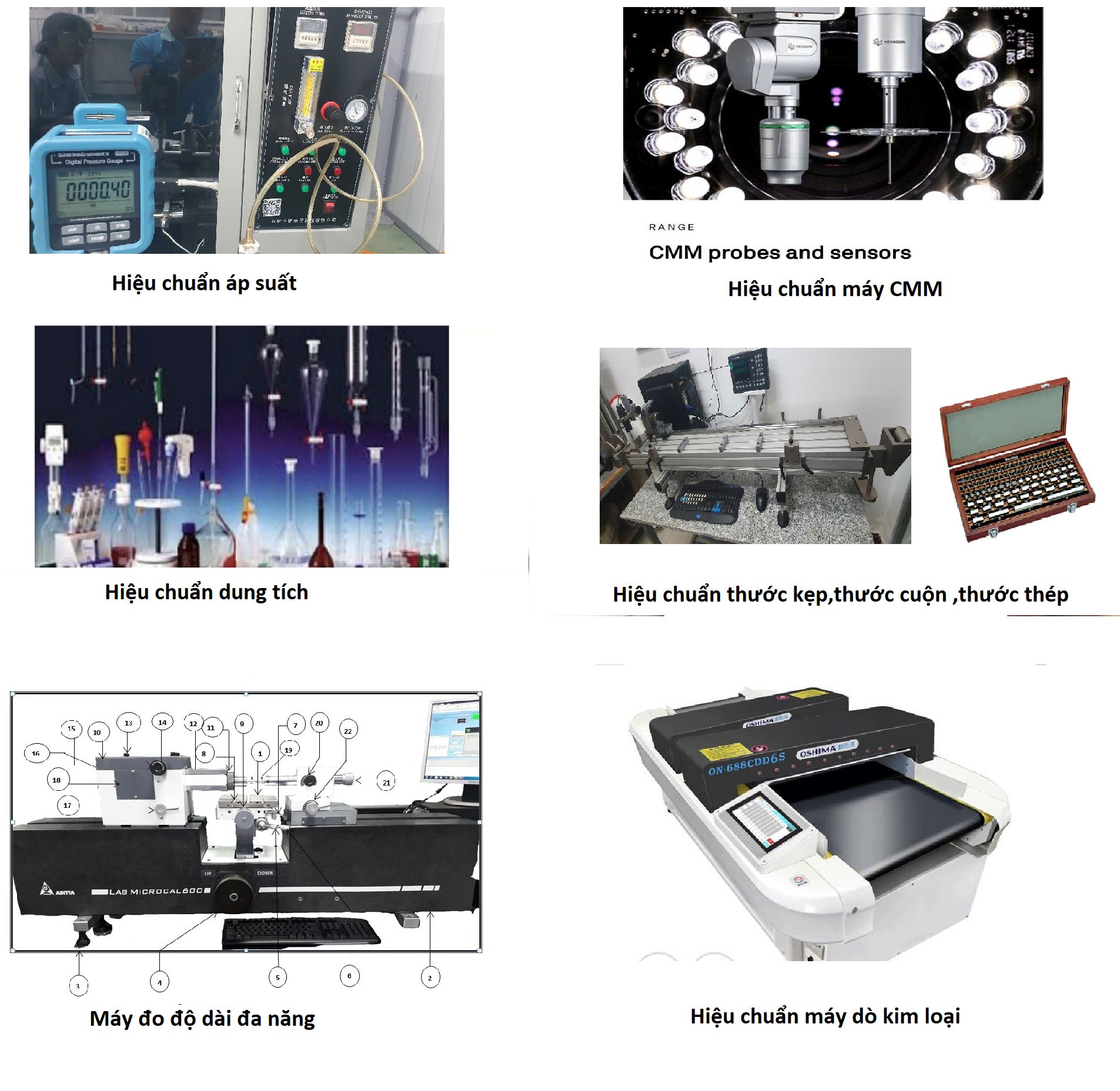Căn mẫu, Vòng chuẩn, Dưỡng kiểm ren trong, ren ngoài, Thước vặn đo ngoài, Thước kẹp, Trụ chuẩn, Thiết bị đo kích thước laser, Dưỡng kiểm kích thước trong, Dưỡng đo độ dày, Máy đo độ cứng, Máy đo độ tròn, Bàn đá chuẩn, Bàn máp, Máy đo tọa độ 3D, CMM, Thước cuộn, Thước lá…