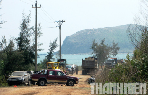 Núi Thọ, hay theo cách gọi quen thuộc của người dân địa phương là “xóm Mới”, được chọn là nơi an táng Đại tướng Võ Nguyên Giáp. Ngay lập tức, việc thi công con đường dẫn vào khu vực này được triển khai khẩn trương. Ngày 8.10, công việc bắt đầu, cả ngày lẫn đêm. Sáng nay 9.10, có mặt tại đây, chúng tôi nhận thấy khoảng một km đường đã có sẵn từ trước hiện được san ủi khá bằng phẳng, rộng rãi. Một km tiếp theo vào đến điểm an táng đang được thi công gấp rút. Đoạn này gần như phải làm mới hoàn toàn. Theo ngư dân địa phương, tàu thuyền đi lại, đánh bắt trong vùng Vũng Chùa - Đảo Yến đã được hạn chế. Các công nhân của công ty nuôi yến trên Đảo Yến cũng vào đất liền, tạm nghỉ ngơi (Theo TN)