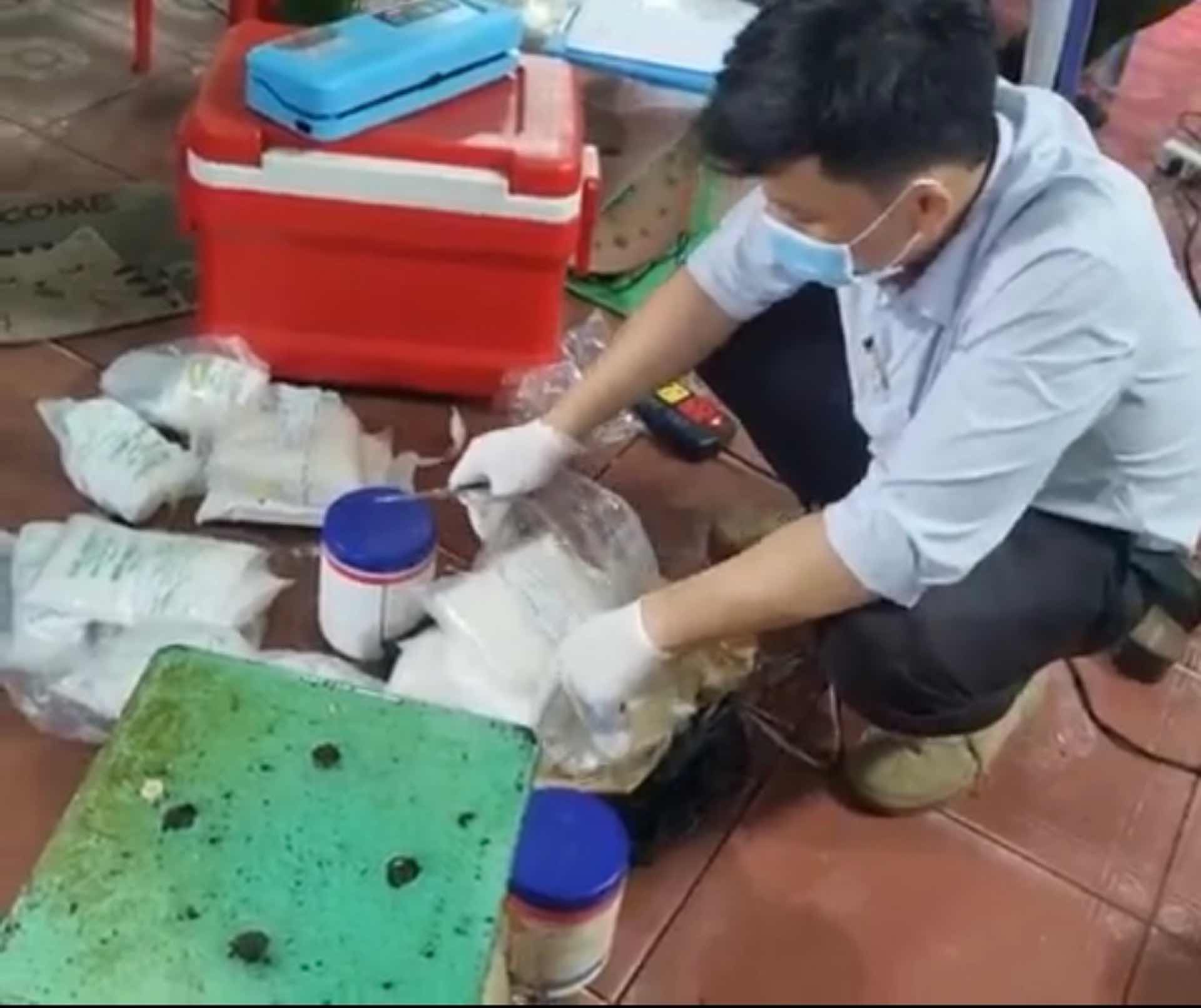 Tại cơ sở do ông N.T.L. làm chủ, lực lượng chức năng ghi nhận quy trình sơ chế gồm: cắt nhỏ hoa chuối non bằng máy, sau đó ngâm nhiều lần trong nước có pha bột trắng không nhãn mác, không rõ thành phần. Khi kiểm tra, ông L. đang ngâm 90 kg hoa chuối trong 3 thùng nhựa, sử dụng khoảng 3 kg bột trắng không rõ nguồn gốc.