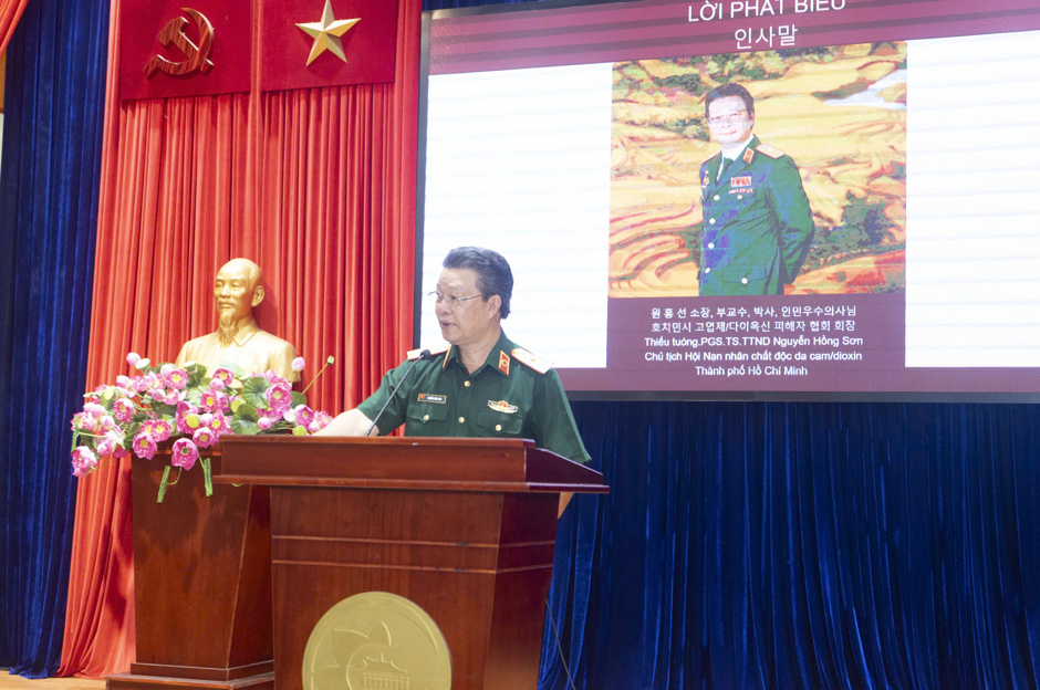 Thiếu tướng, PGS. TS, Thầy thuốc Nhân dân Nguyễn Hồng Sơn - Chủ tịch Hội Nạn nhân chất độc da cam/dioxin Thành phố Hồ Chí Minh phát biểu tại sự kiện.