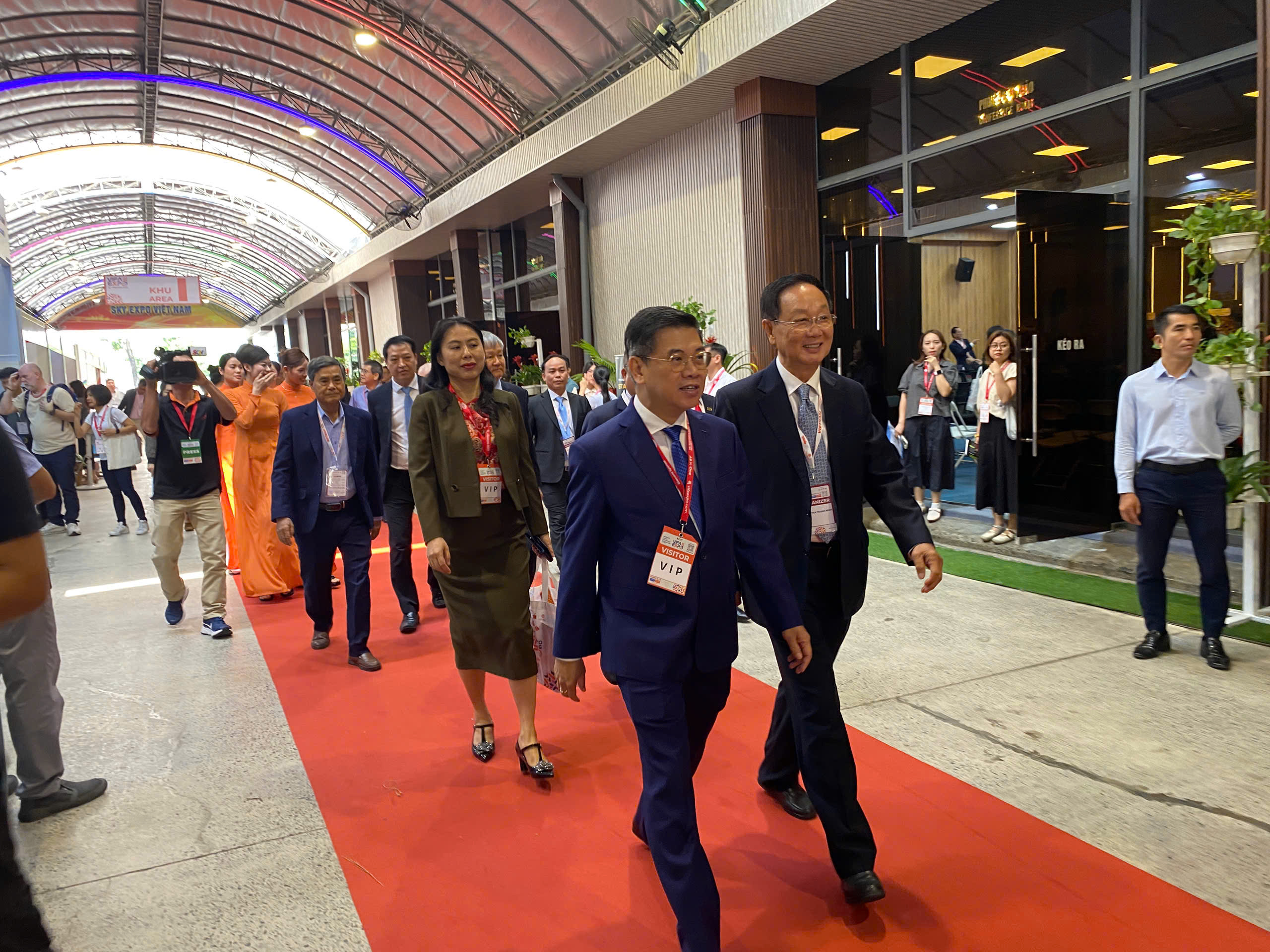 Đoàn đại biểu tham quan các gian hàng trưng bày.