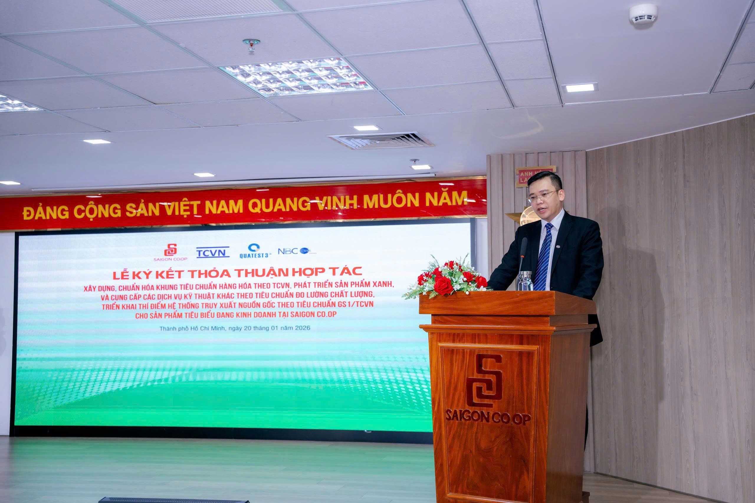 Ngày 20/01/2026, tại trụ sở Liên hiệp Hợp tác xã Thương mại TP. Hồ Chí Minh (Saigon Co.op), Viện Tiêu chuẩn Chất lượng Việt Nam đã phối hợp với Liên hiệp Hợp tác xã Thương mại TP. Hồ Chí Minh (Saigon Co.op) và Trung tâm Kỹ thuật Tiêu chuẩn Đo lường Chất lượng 3 (Quatest 3) tổ chức Lễ ký kết Biên bản ghi nhớ hợp tác (MoU), đánh dấu bước phát triển quan trọng trong việc tăng cường liên kết giữa cơ quan nghiên cứu – xây dựng tiêu chuẩn, đơn vị thử nghiệm – đánh giá chứng nhận và doanh nghiệp phân phối bán lẻ.
