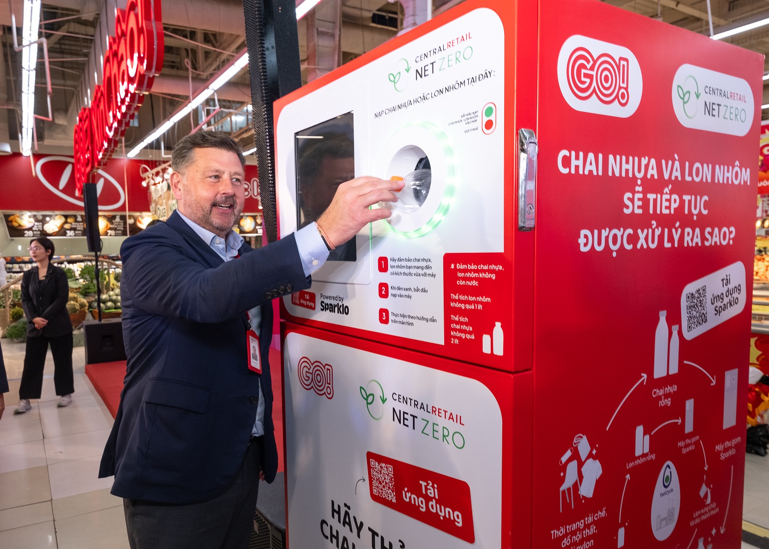(VietQ.vn) - Tập đoàn Central Retail Việt Nam và Sparklo- Công ty công nghệ sạch, chuyên cách mạng hóa ngành tái chế và khuyến khích các hoạt động về phát triển bền vững trên toàn thế giới ký kết hợp tác Sáng kiến tái chế, thông qua việc lắp đặt các Máy thu gom rác thải tái chế hiện đại- Sparklomats tại hệ thống Trung tâm Thương mại GO! trên toàn quốc, qua đó truyền cảm hứng, khuyến khích khách hàng cùng hướng đến lối sống xanh không rác thải, góp phần thúc đẩy nền kinh tế tuần hoàn.
