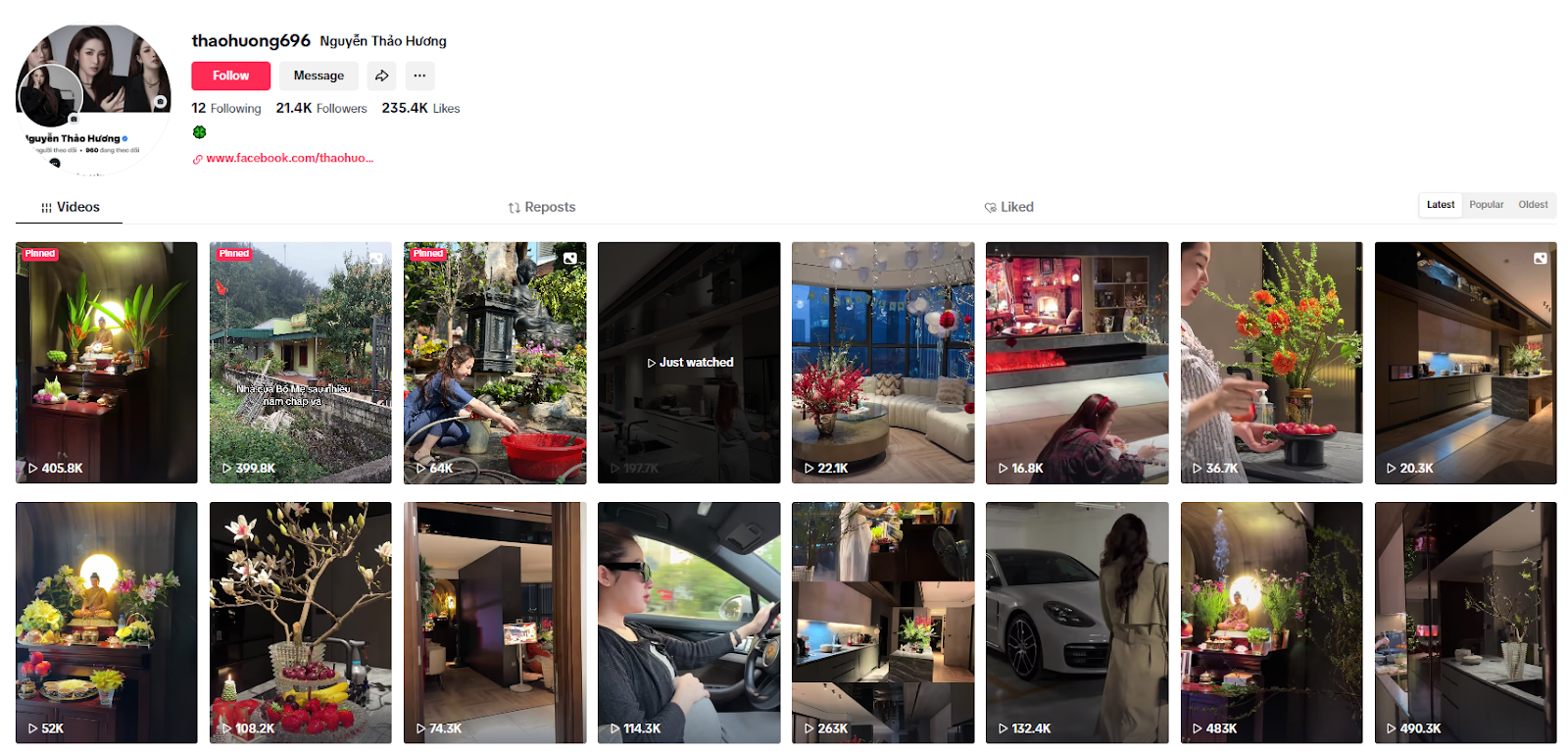 Trang Tiktok của Nguyễn Thảo Hương thu hút sự quan tâm lớn từ phía cộng đồng mạng.