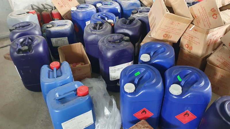Tại thời điểm kiểm tra, lực lượng chức năng phát hiện công ty đang tổ chức sản xuất trái phép các sản phẩm như nước giặt, nước xả vải, nước rửa chén mang nhãn hiệu D-nee, Hygiene và Tauau. Tang vật thu giữ gồm hàng trăm can hóa chất, máy móc, nhãn mác, tem giả và hàng nghìn bao bì in nhái theo mẫu thật.