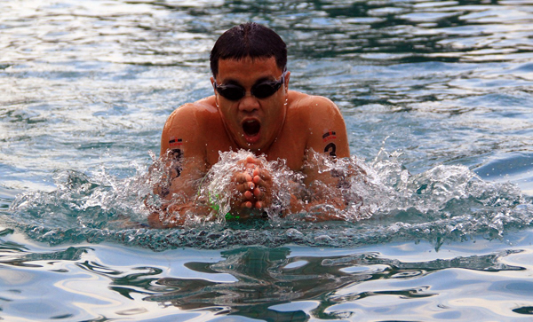Ngô Quang Thảo cũng tích cực với cữ dượt trên hồ bơi