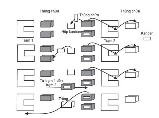 Phương pháp Kanban: Trong một xưởng sản xuất, bước làm việc thứ N chỉ sản xuất một khi được chỗ làm việc thứ N+1 yêu cầu. Chỗ làm việc này lại chỉ sản xuất khi có yêu cầu từ chỗ làm việc thứ N+2... chỗ làm việc cuối cùng chỉ sản xuất khi làm thỏa mãn yêu cầu khách hàng.