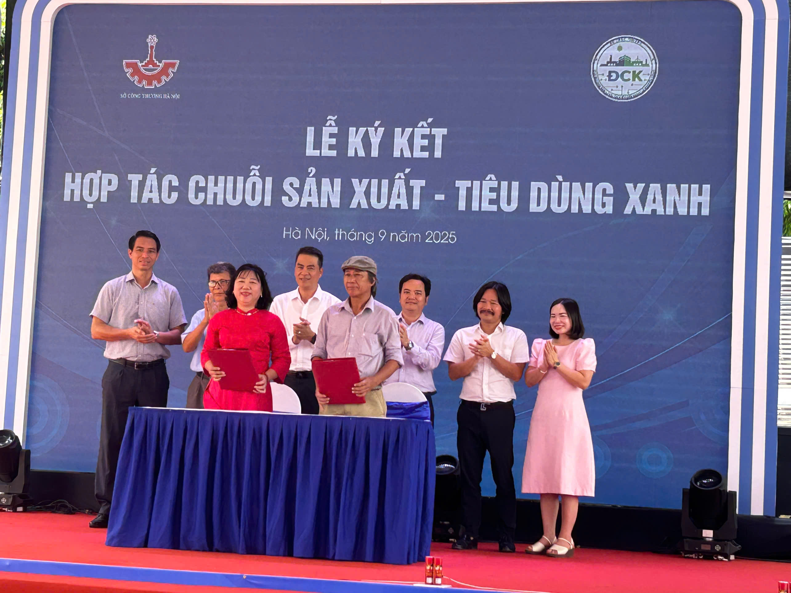 Ký kết hợp tác chuỗi sản xuất – tiêu dùng xanh giữa các doanh nghiệp tại sự kiện.