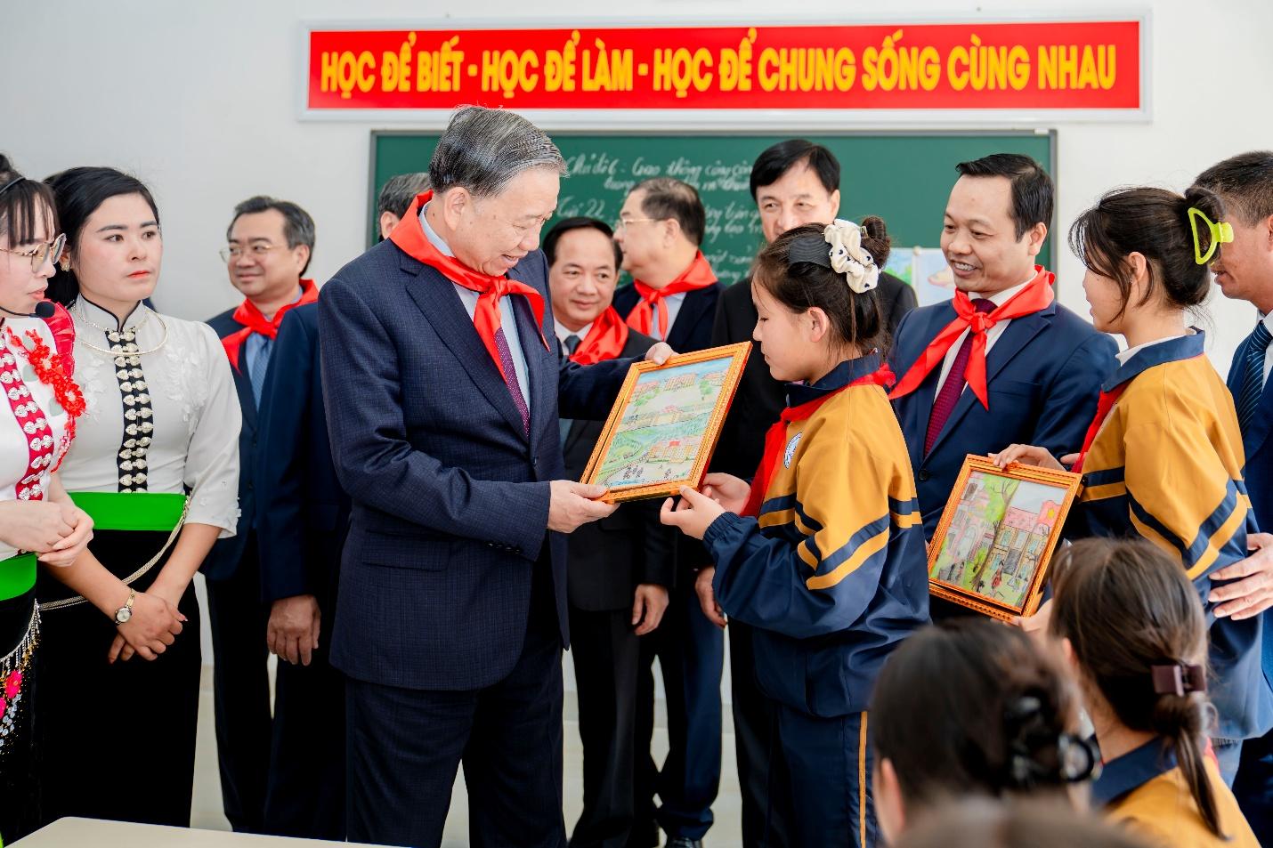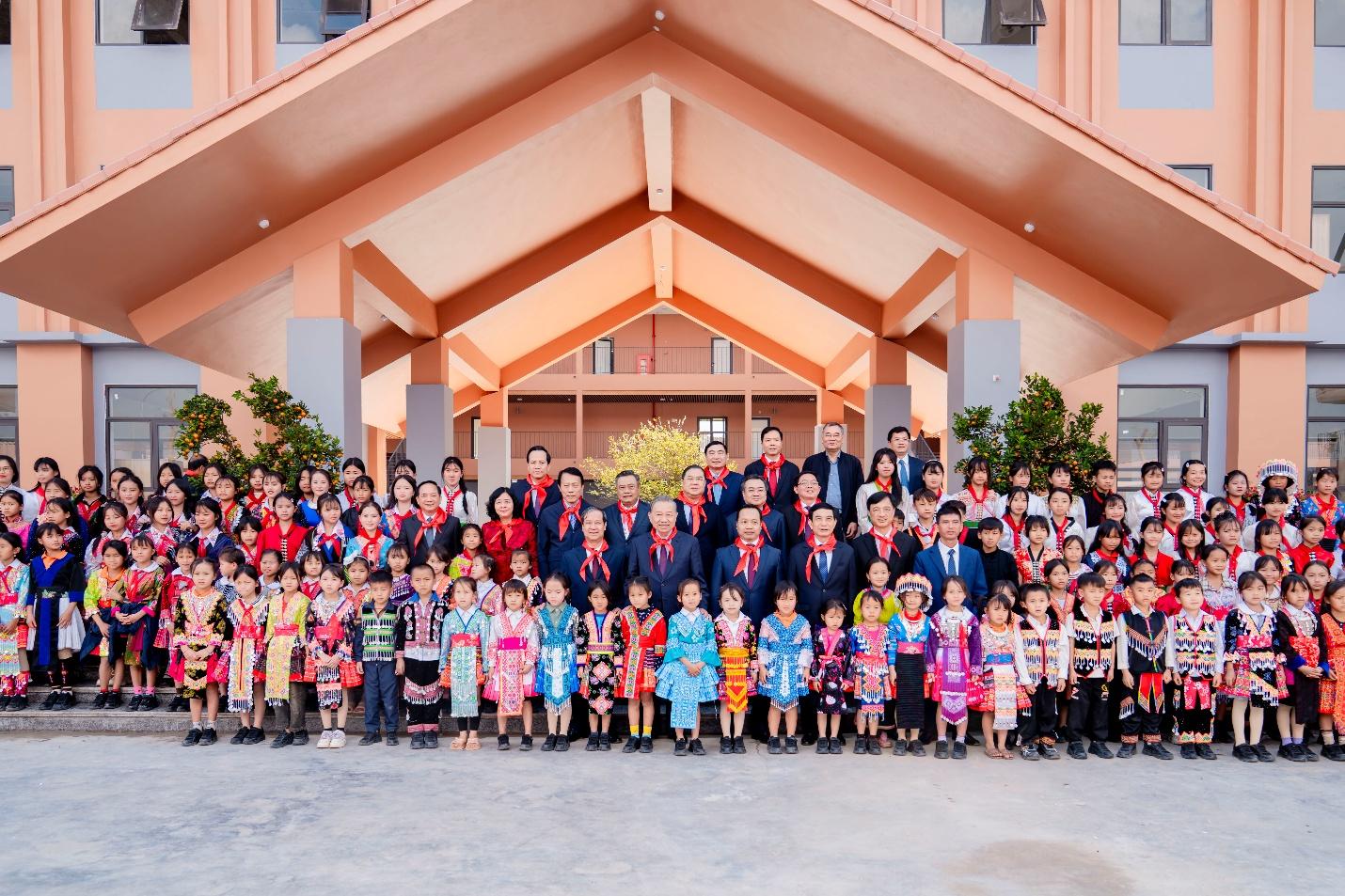 Tổng Bí thư Tô Lâm thăm lớp học, động viên thầy và trò trường liên cấp Si Pa Phìn. Đại diện đơn vị thi công, Tập đoàn Sun Group chia sẻ: “Các nhà thầu đã thi công với tinh thần ‘vượt nắng thắng mưa’. Hàng trăm kỹ sư, công nhân đã tổ chức thi công liên tục 2–3 ca/ngày, bất chấp mùa mưa kéo dài hơn 45 ngày gây khó khăn cho công tác san lấp và làm móng. Mục tiêu cao nhất là đưa dự án về đích đúng tiến độ để các em học sinh có thể bắt đầu học kỳ II năm học 2025-2026 trong ngôi trường mới”.