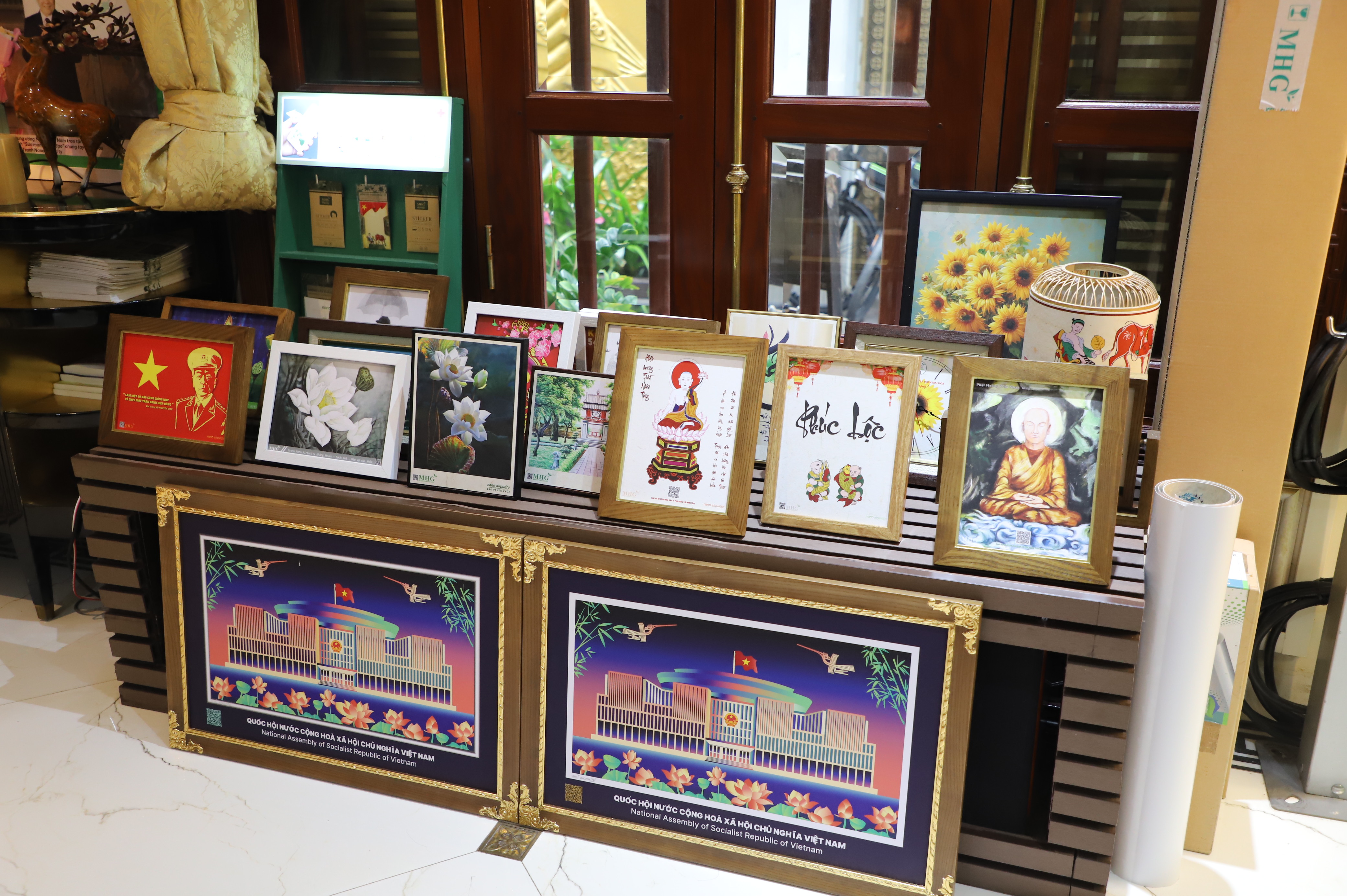 Với tôi, mỗi bức tranh không chỉ là một tác phẩm nghệ thuật để ngắm nhìn, mà còn là một câu chuyện sống động. Chính vì vậy, chúng tôi tích hợp mã QR trong tranh để khi người xem quét lên, họ sẽ được tiếp cận những câu chuyện phía sau tác phẩm: câu chuyện lịch sử, câu chuyện văn hóa, hay những bài học mà Bác Hồ để lại. Điều đó giúp bức tranh trở nên “sống” hơn, không còn là một tác phẩm “tĩnh”, mà trở thành cầu nối giữa nghệ thuật và tri thức, giữa truyền thống và công nghệ, để người xem có thể cảm nhận đa chiều bằng nhiều giác quan hơn.