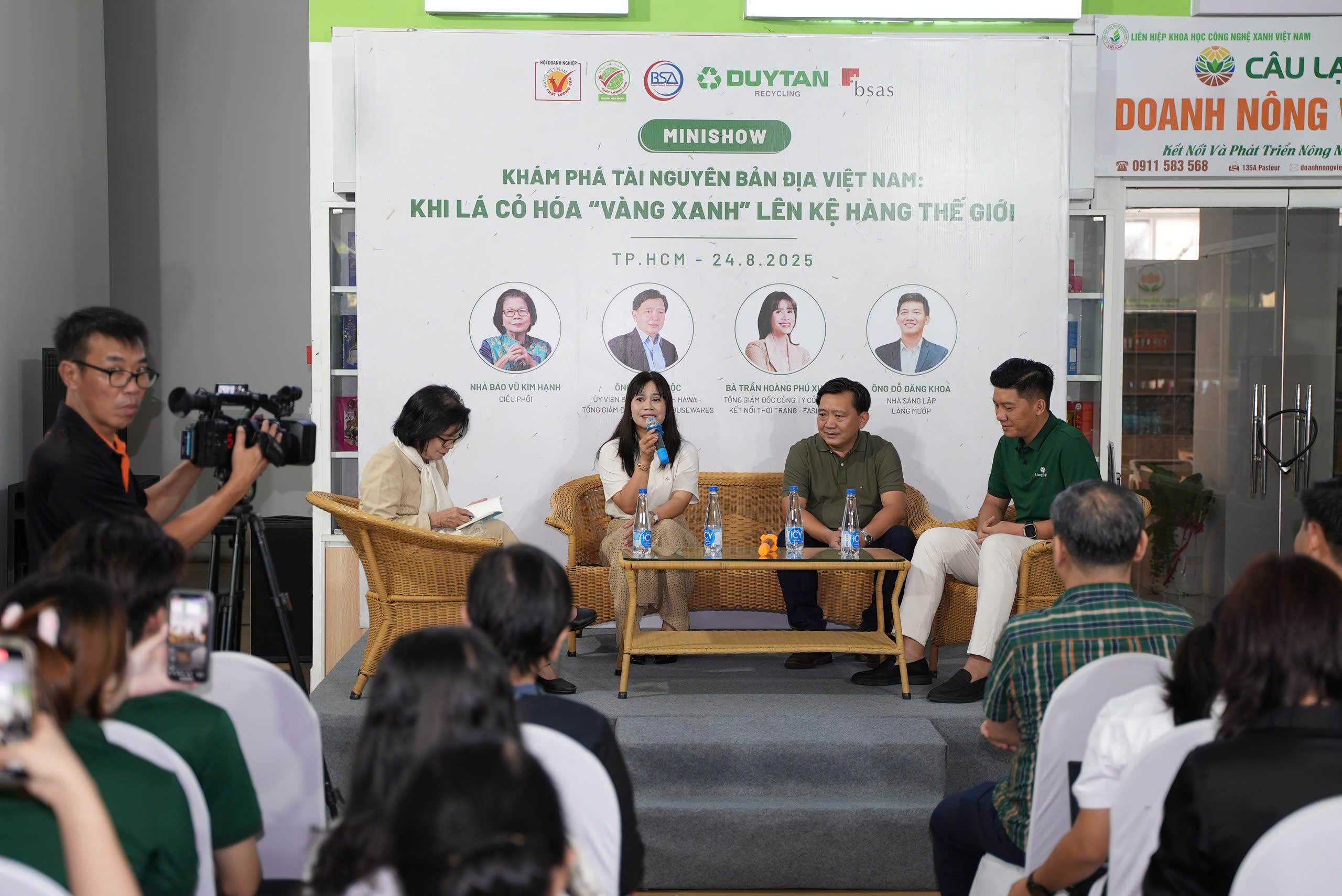 Theo bà Vũ Kim Hạnh, Chủ tịch Hội Doanh nghiệp Hàng Việt Nam Chất lượng cao, tiềm năng “vàng xanh” của Việt Nam là vô cùng lớn. Nhưng nếu doanh nghiệp chỉ dừng lại ở khâu thử nghiệm, không thương mại hóa thì sản phẩm vẫn chỉ là “nguyên liệu quê nhà”. Muốn bền vững phải đi trọn vẹn từ nghiên cứu – thiết kế – sản xuất – tiếp thị, đồng thời trả công xứng đáng cho người nông dân để giữ ổn định vùng nguyên liệu.