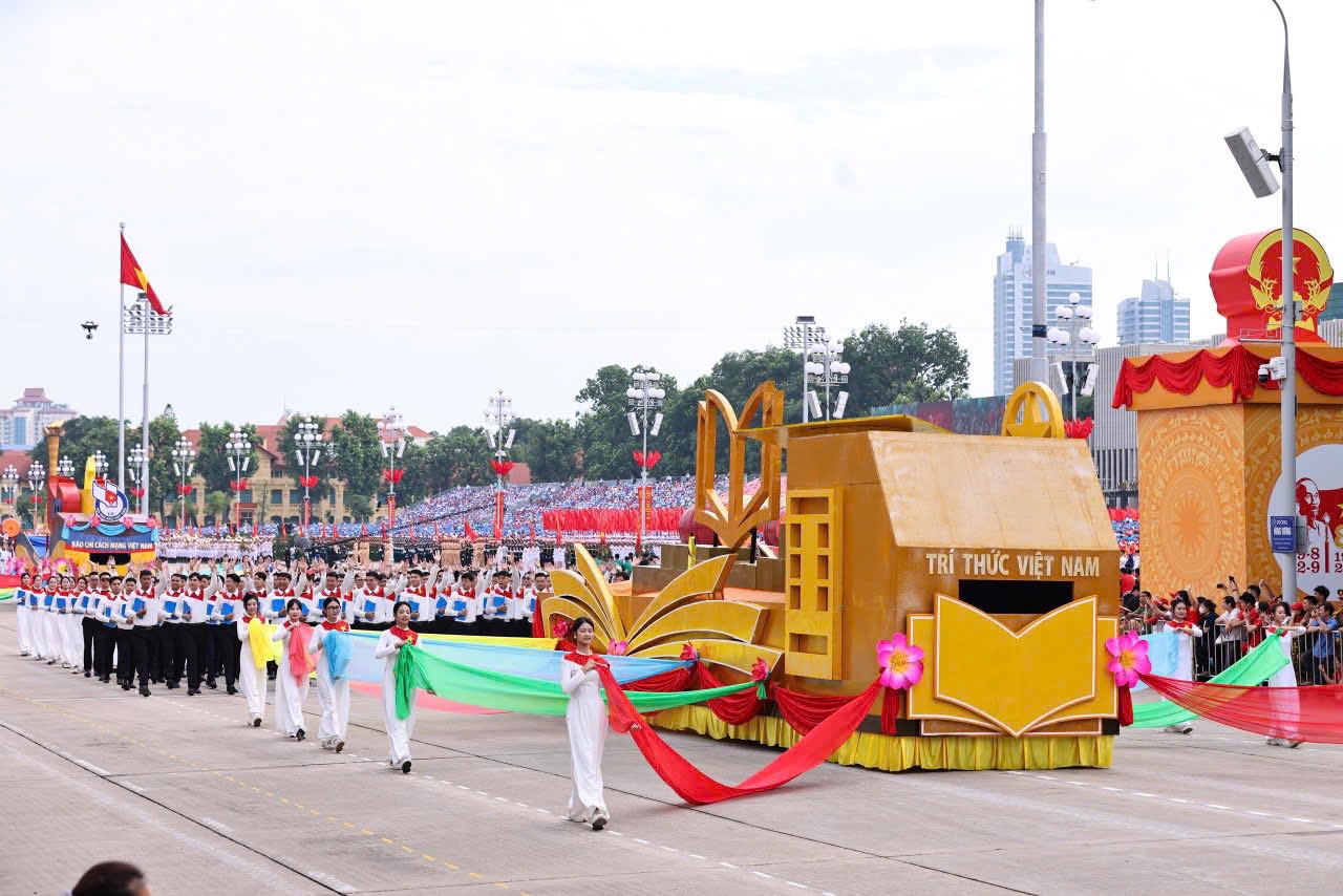 Theo đánh giá, Khối Trí thức Việt Nam tham gia diễu hành, đại diện mang theo niềm tin, khát vọng và tinh thần đổi mới sáng tạo. Khối thể hiện tinh thần hội tụ những con người dám nghĩ – dám làm, tiên phong làm chủ khoa học – công nghệ, thúc đẩy chuyển đổi số, kiến tạo những giá trị bền vững cho hôm nay và mai sau.